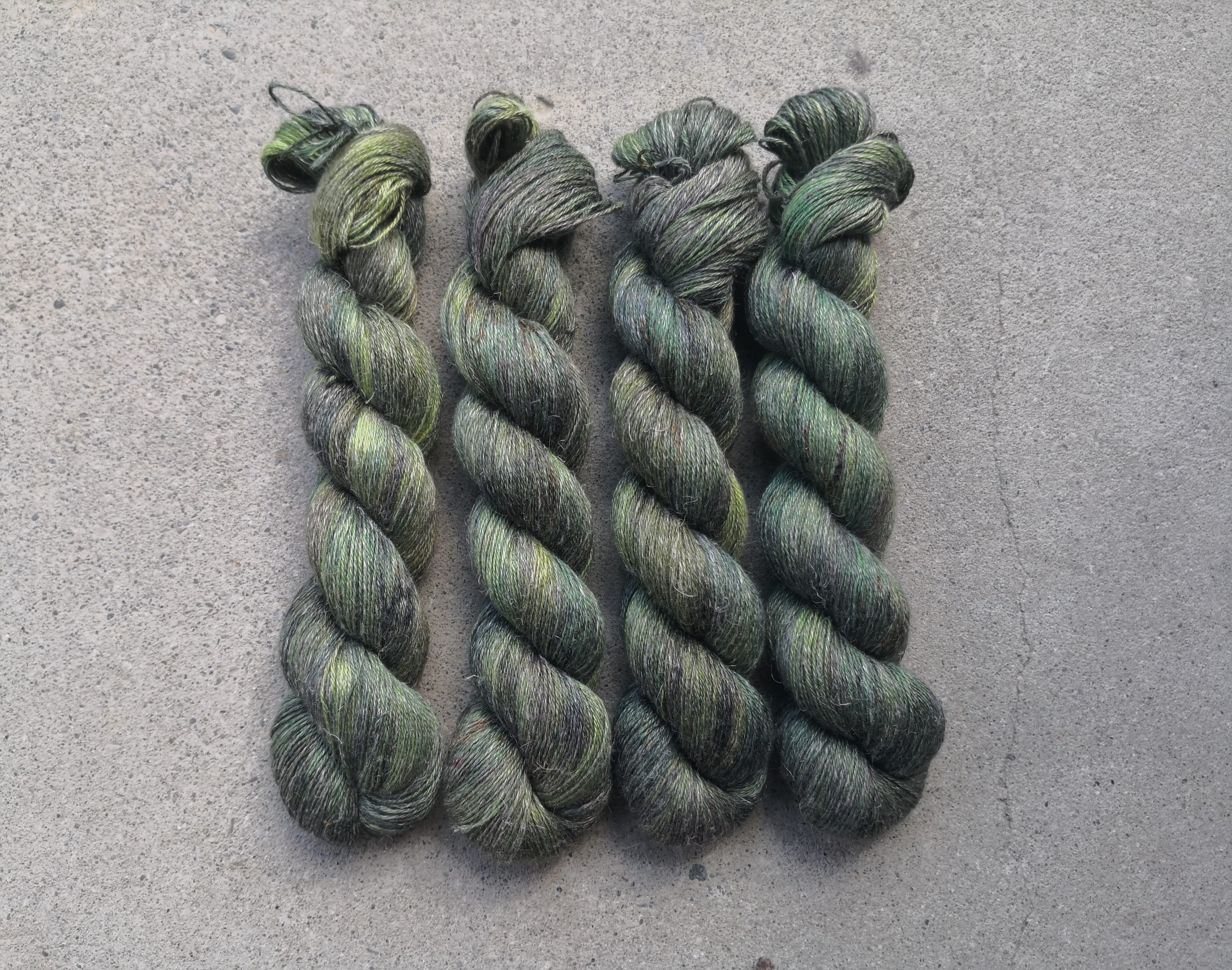 Lovely 4ply yarn in a blend of 50 % baby alpaca, 25 % silk and 25 % linen/flax. Yardage 400 meters per 100 grams. Brisk means ‘juniper’ in english.
