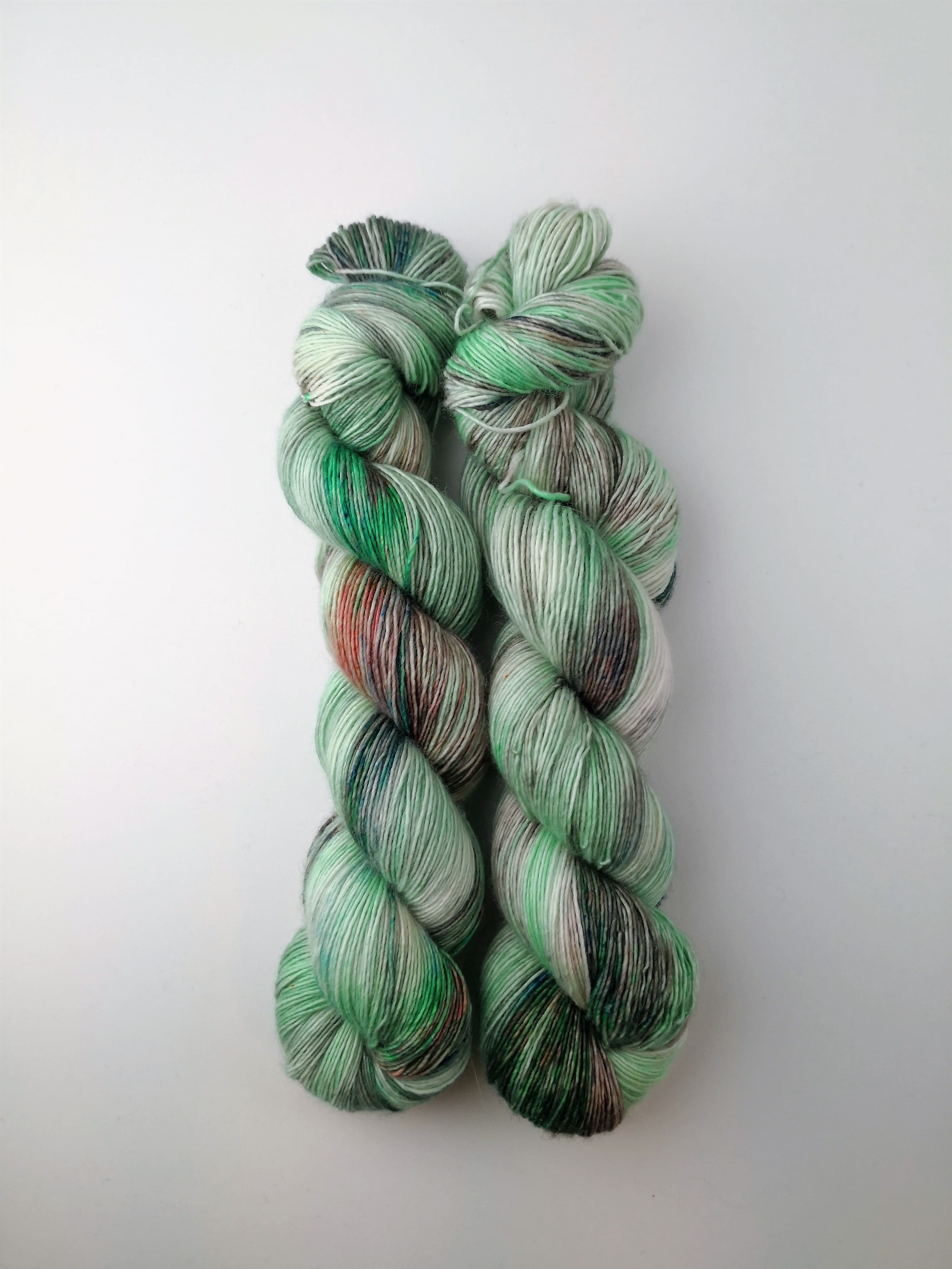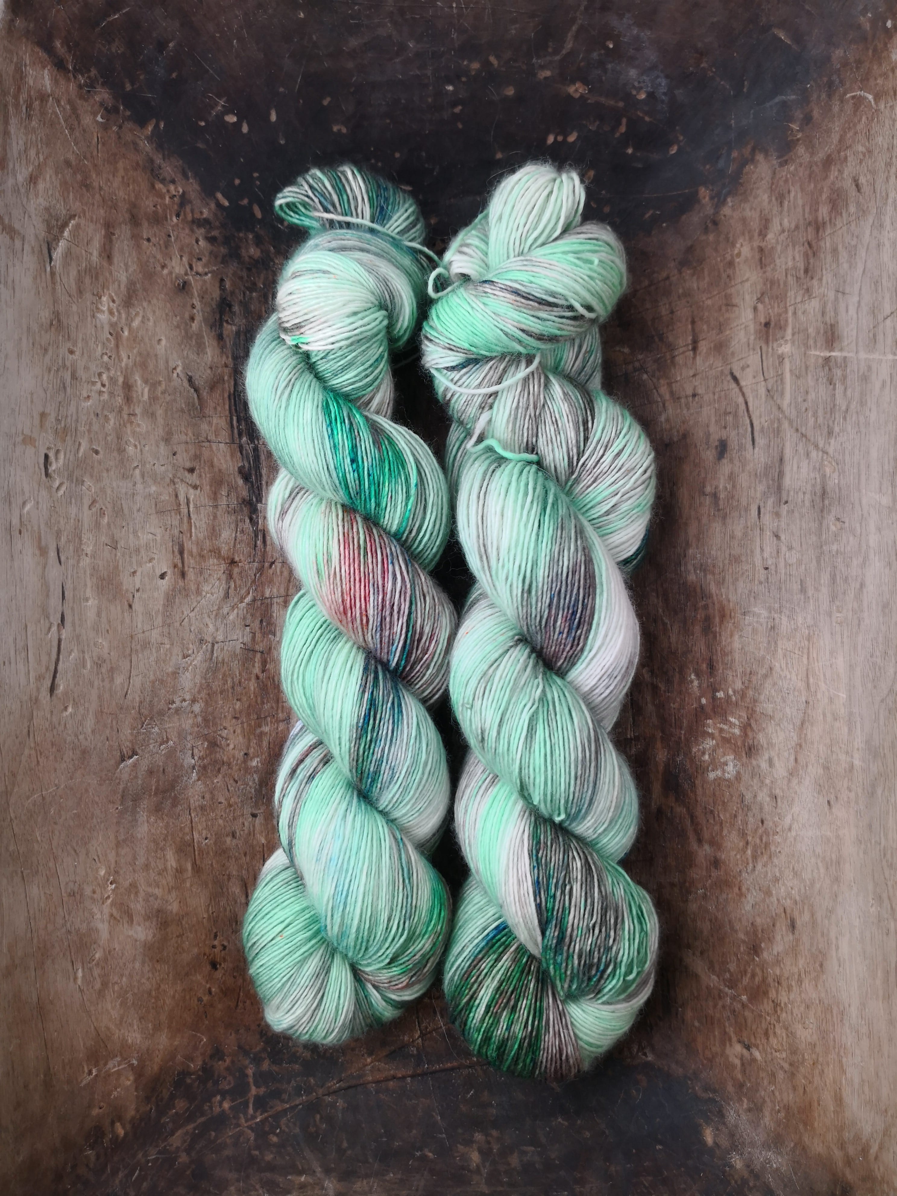 100 gram håndfarga og superwashbehandlet garn.