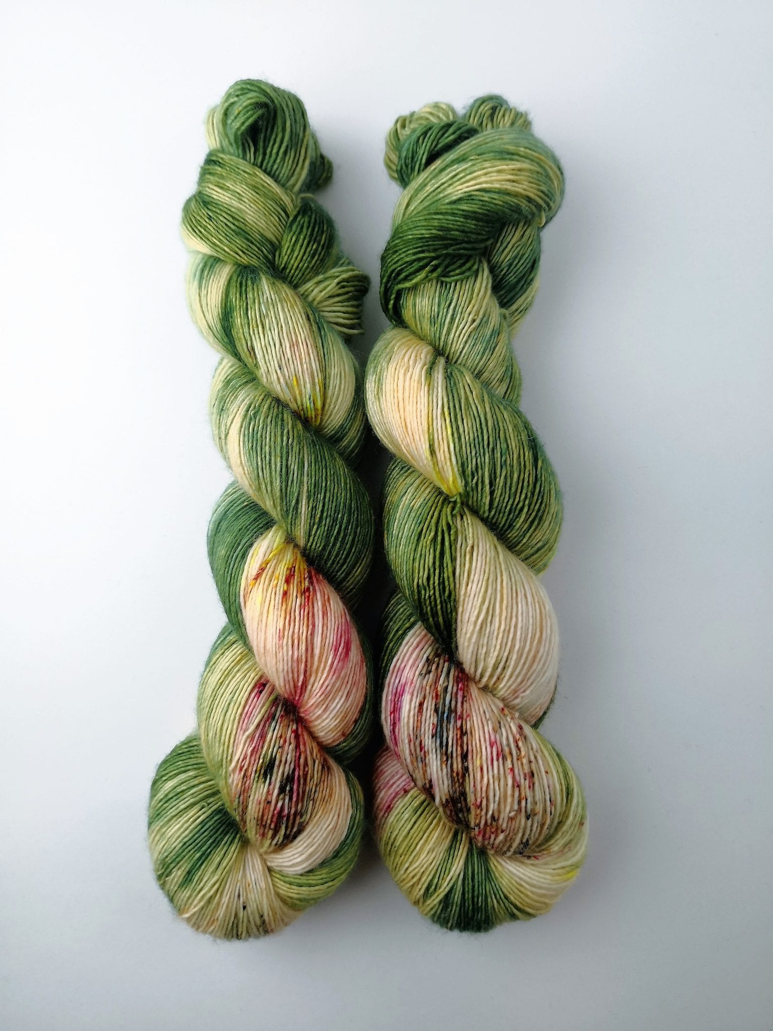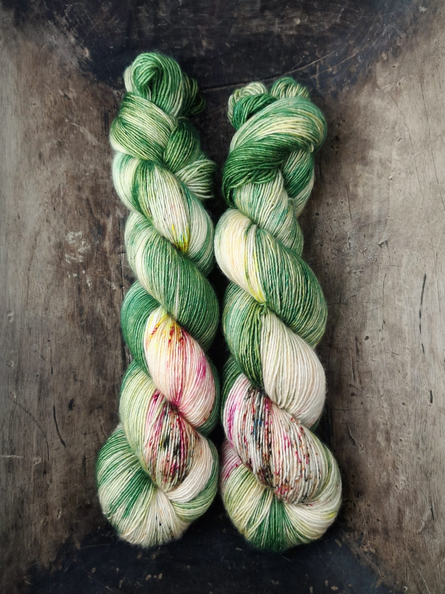100 gram håndfarga og superwashbehandlet garn.