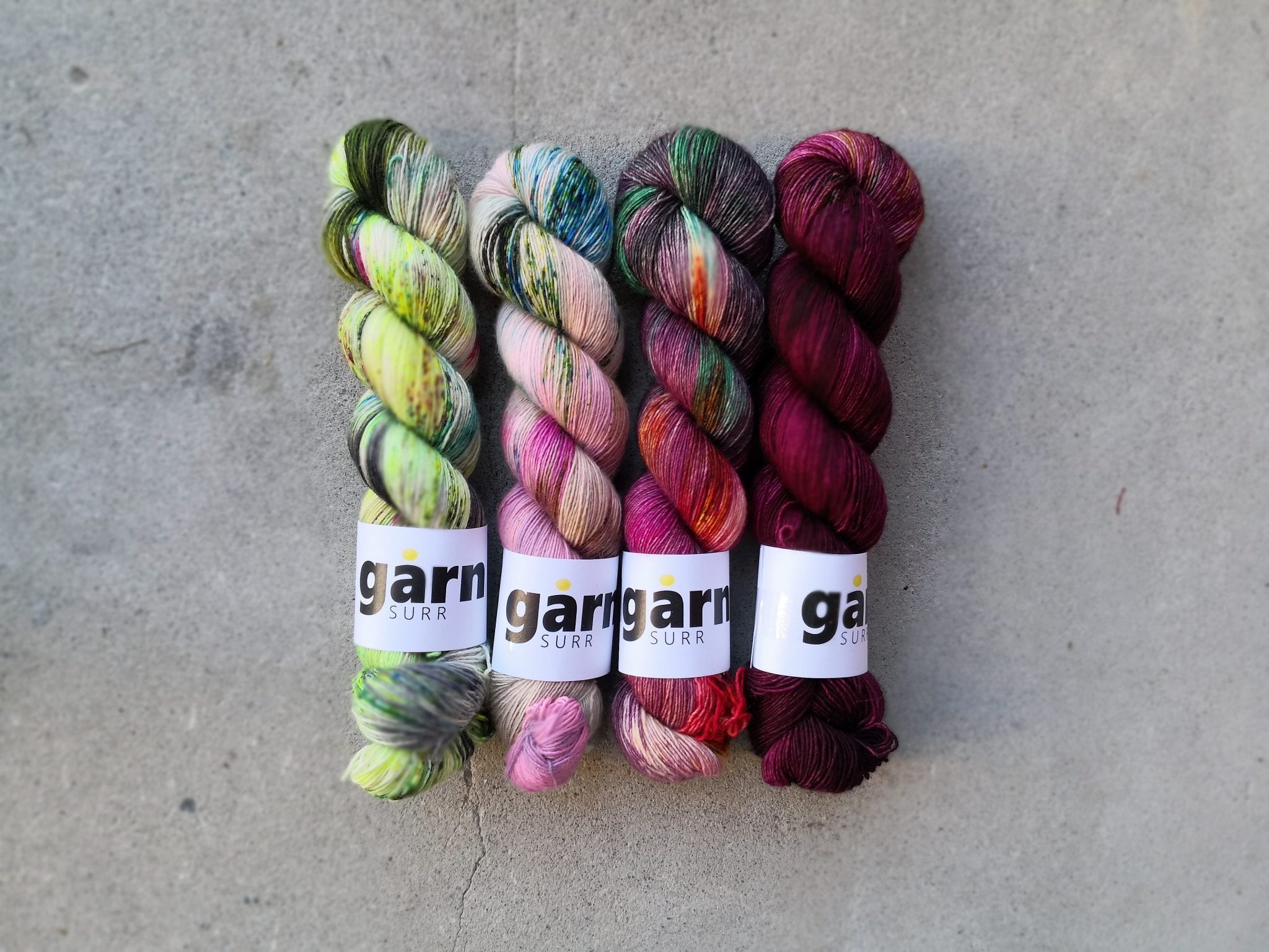 Yarnkit with four skeins of singel merino (366 meter/100 g).