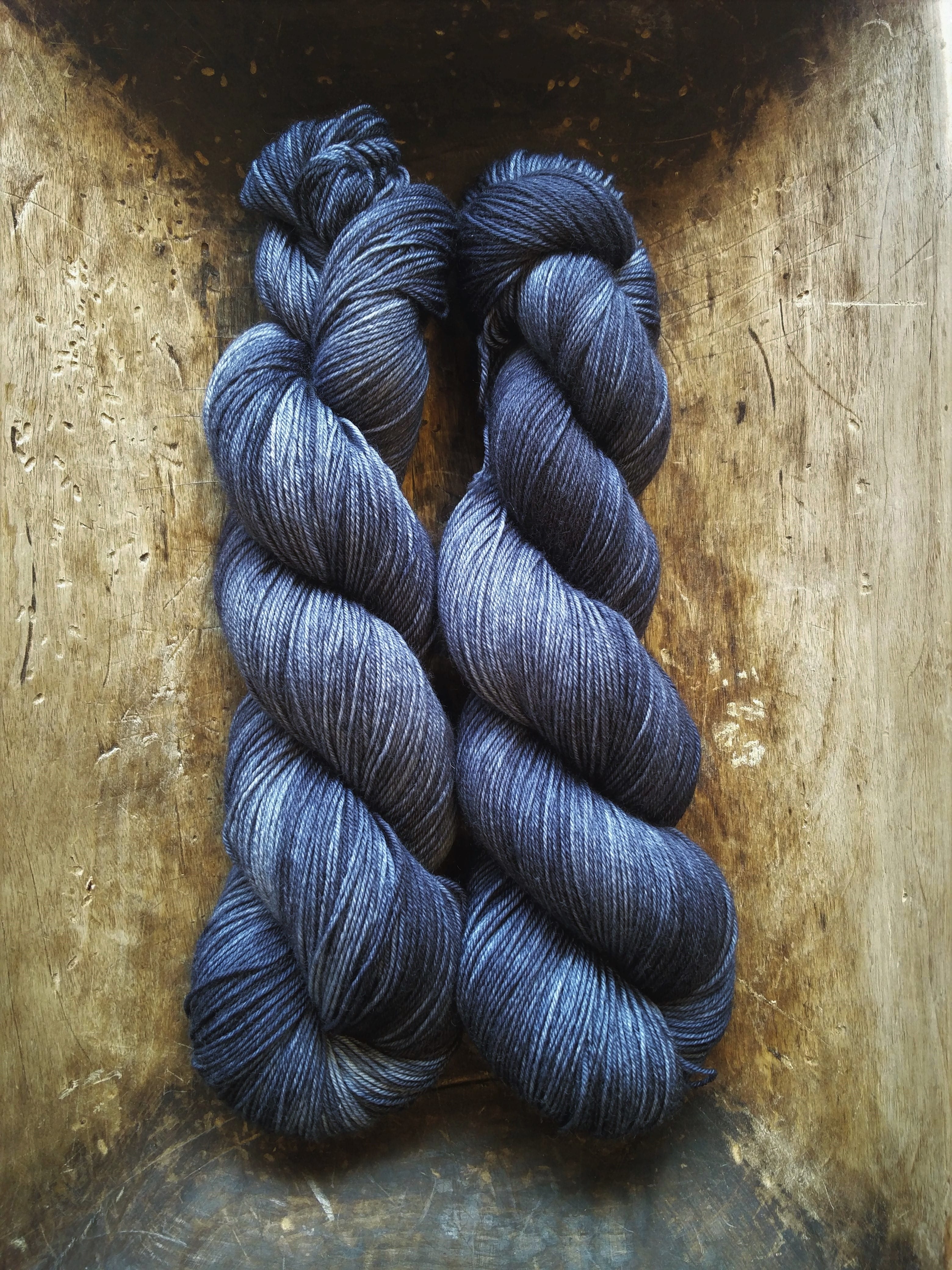 100 gram håndfarga og superwashbehandlet garn.