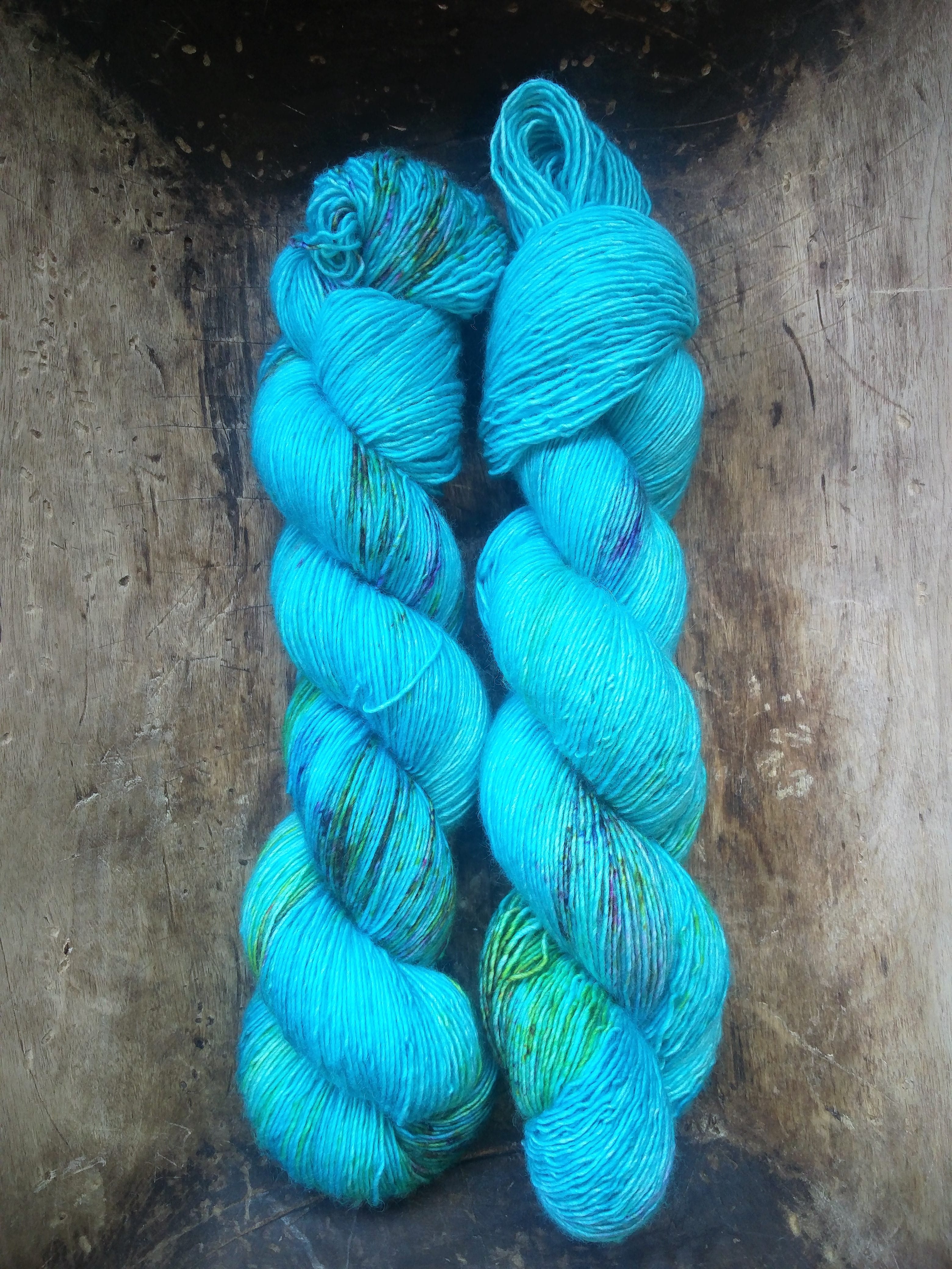 100 gram håndfarga og superwashbehandlet garn.
