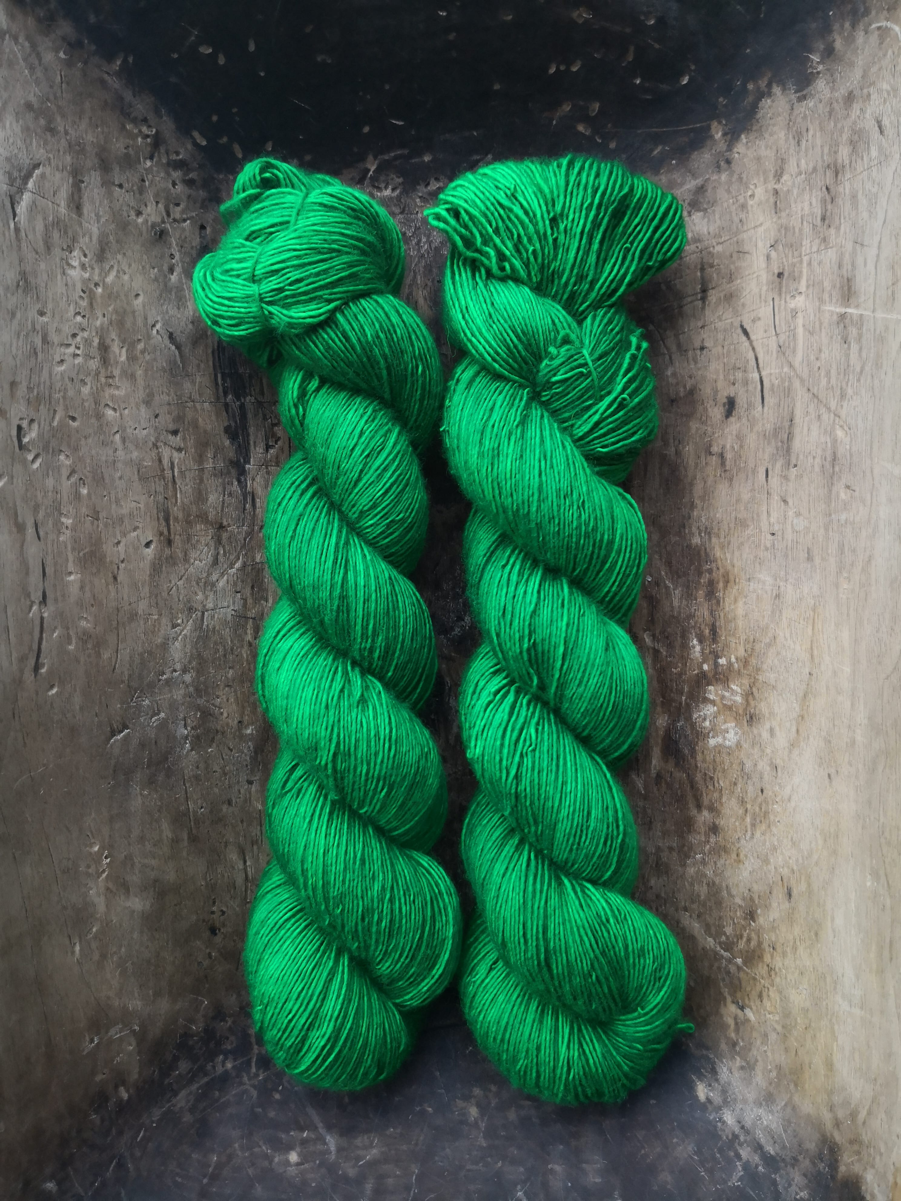 100 gram håndfarga og superwashbehandlet garn.