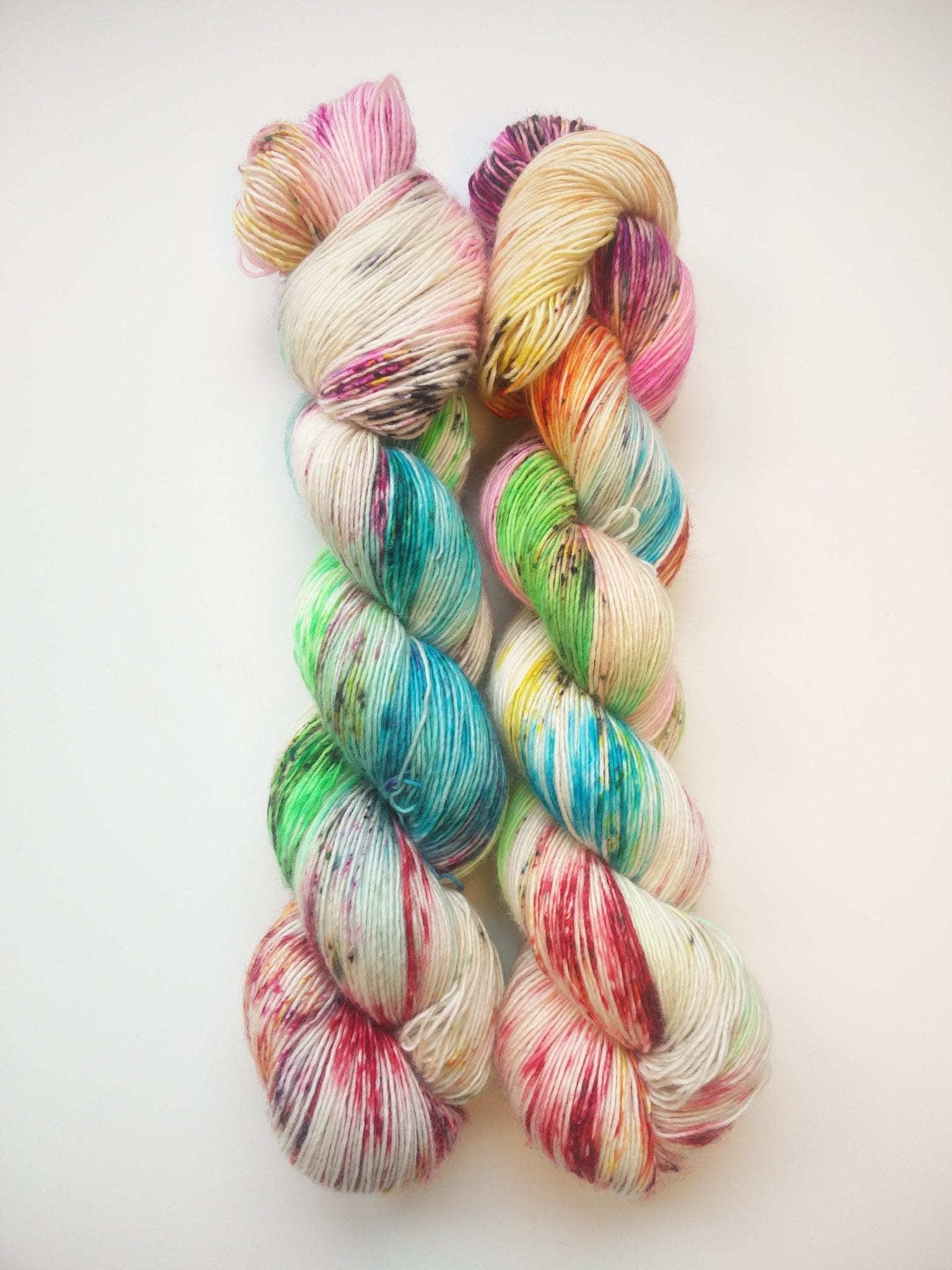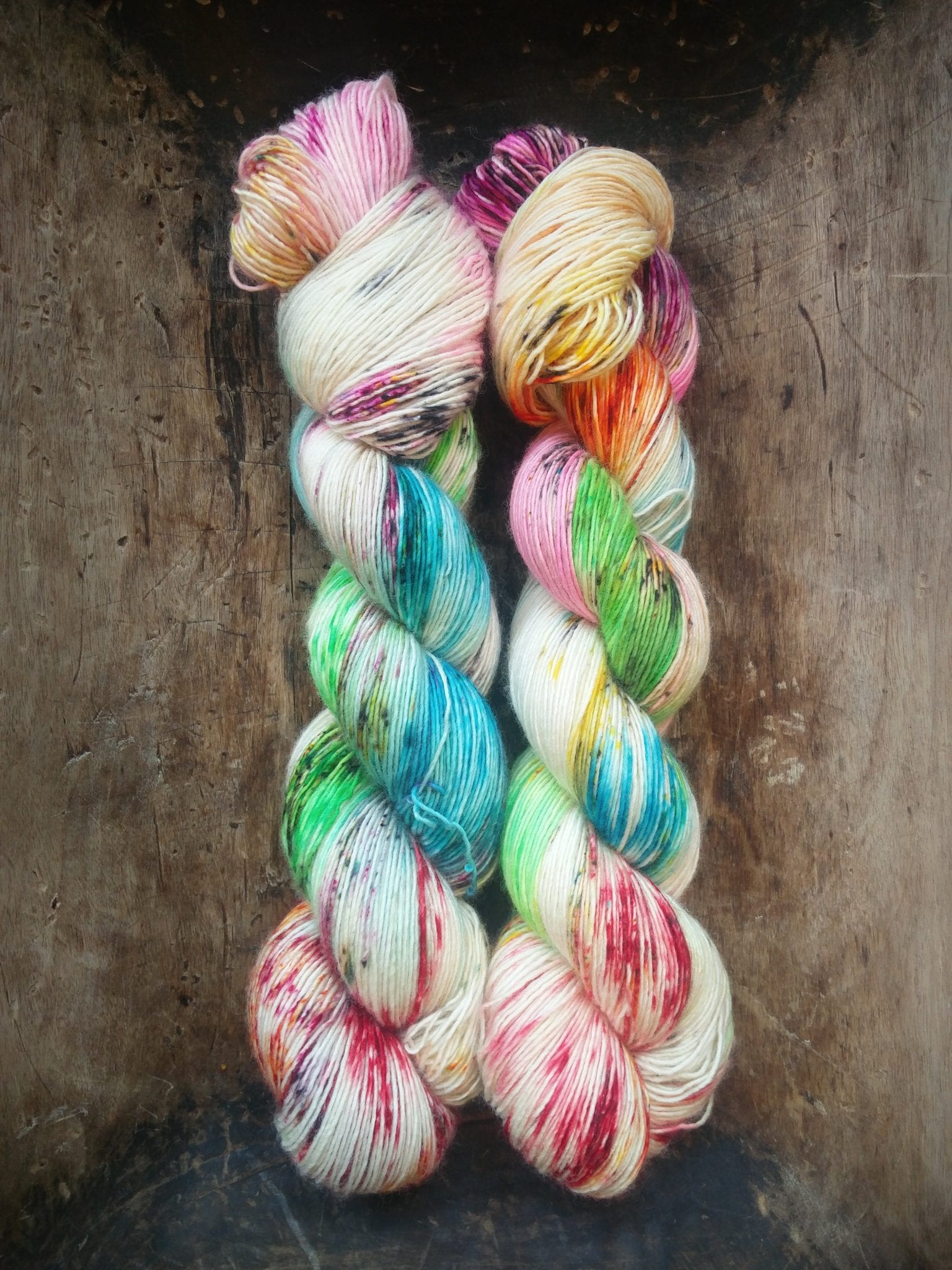 100 gram håndfarga og superwashbehandlet garn.