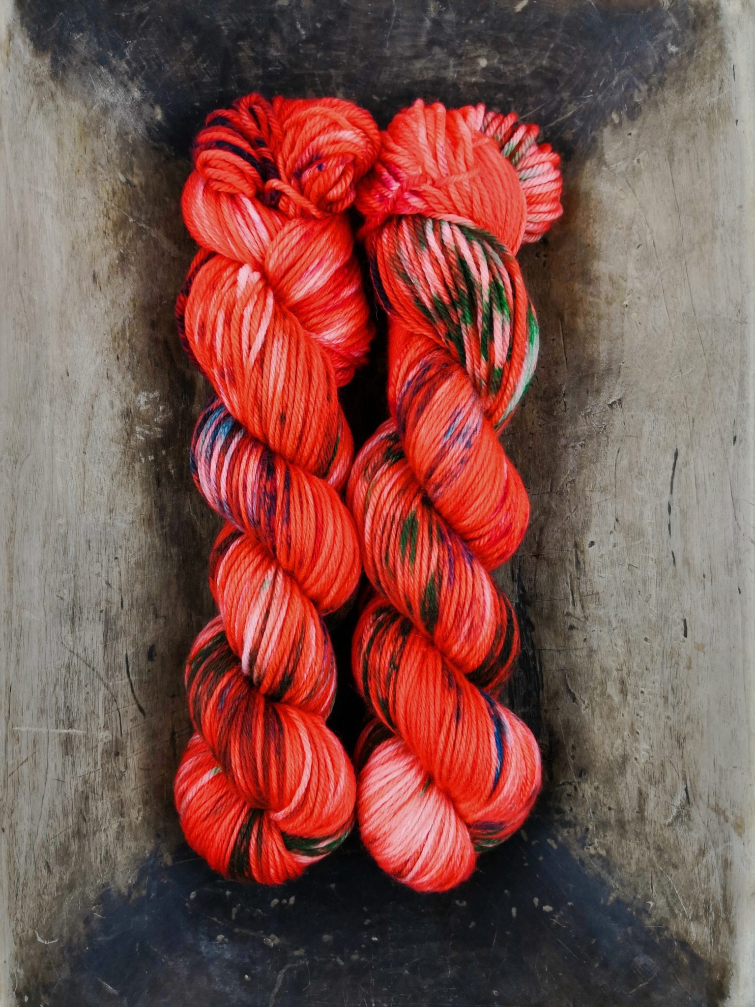 100 gram håndfarga og superwashbehandlet merino garn, lengde 225 meter (DK weight). Garnet er supermykt, og kan brukes til det meste – kofter, luer, jakker og skjerf.