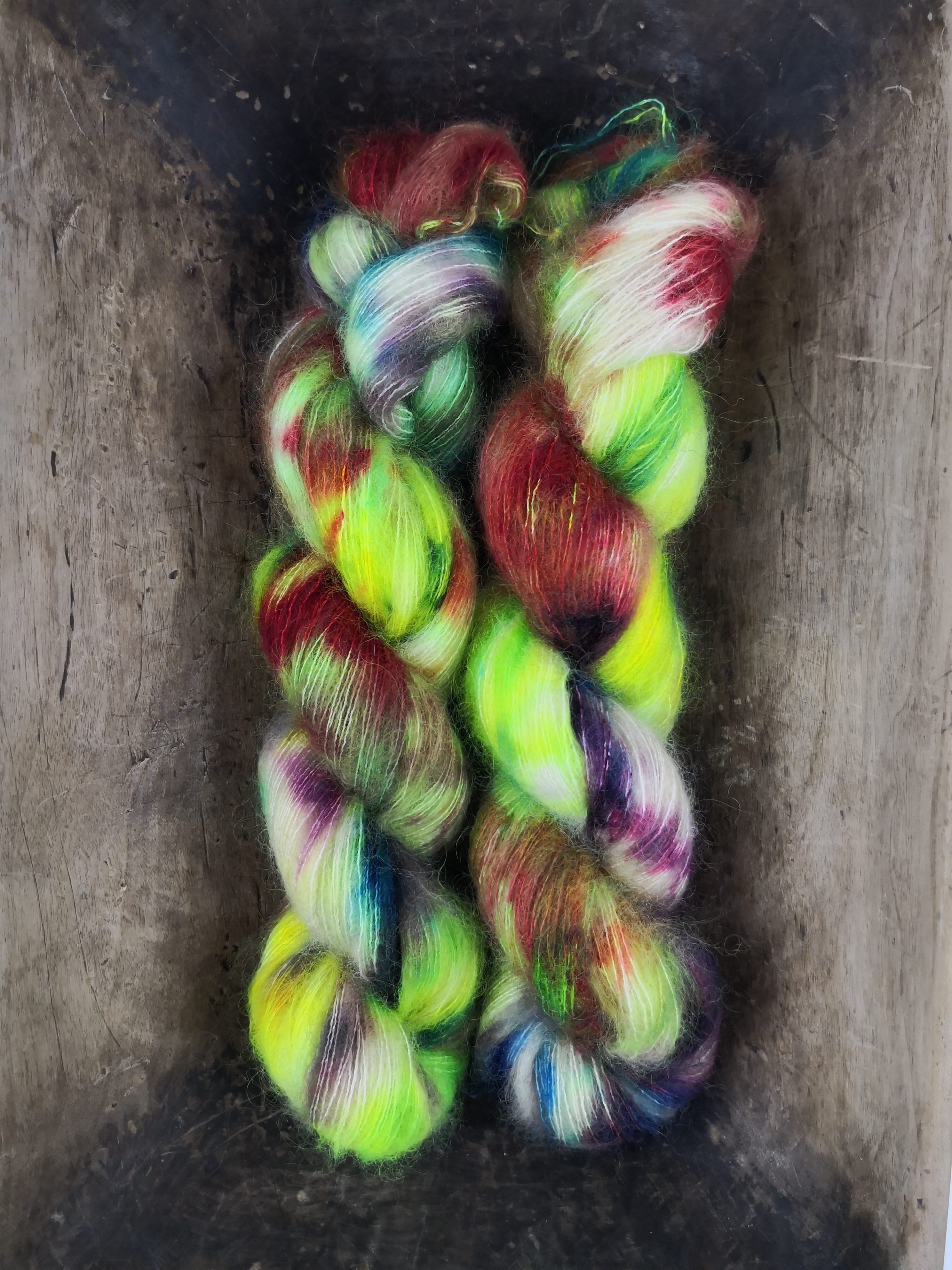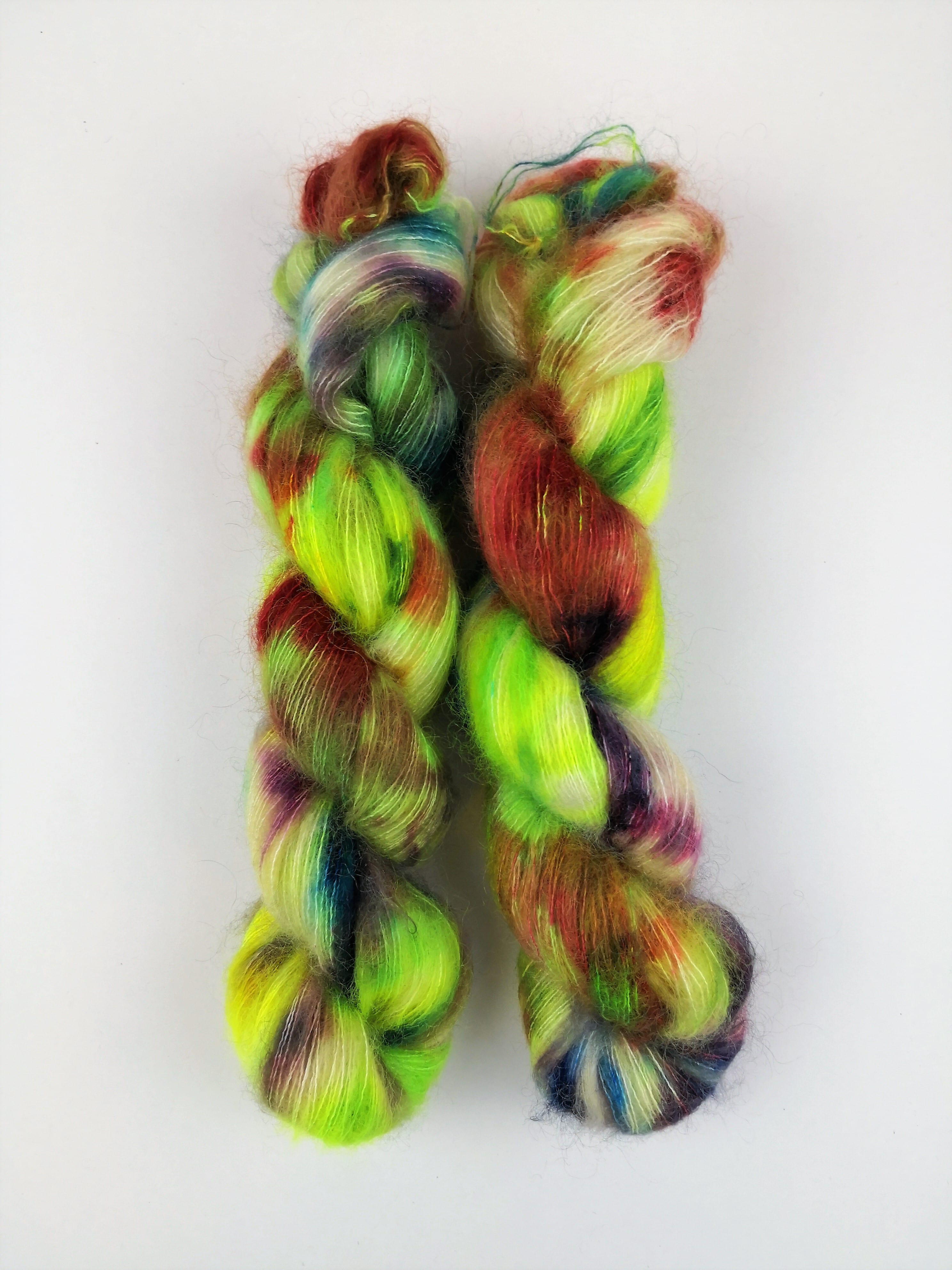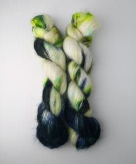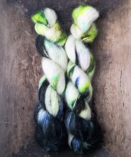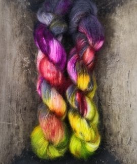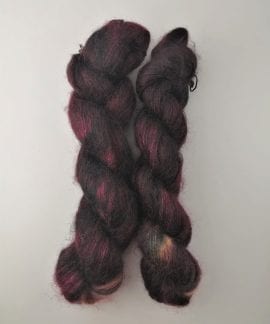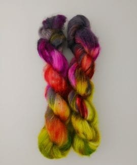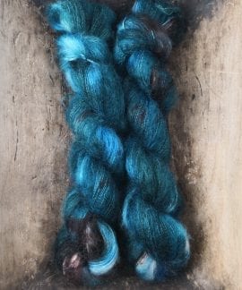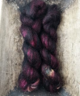50 gram håndfarga silk mohair.