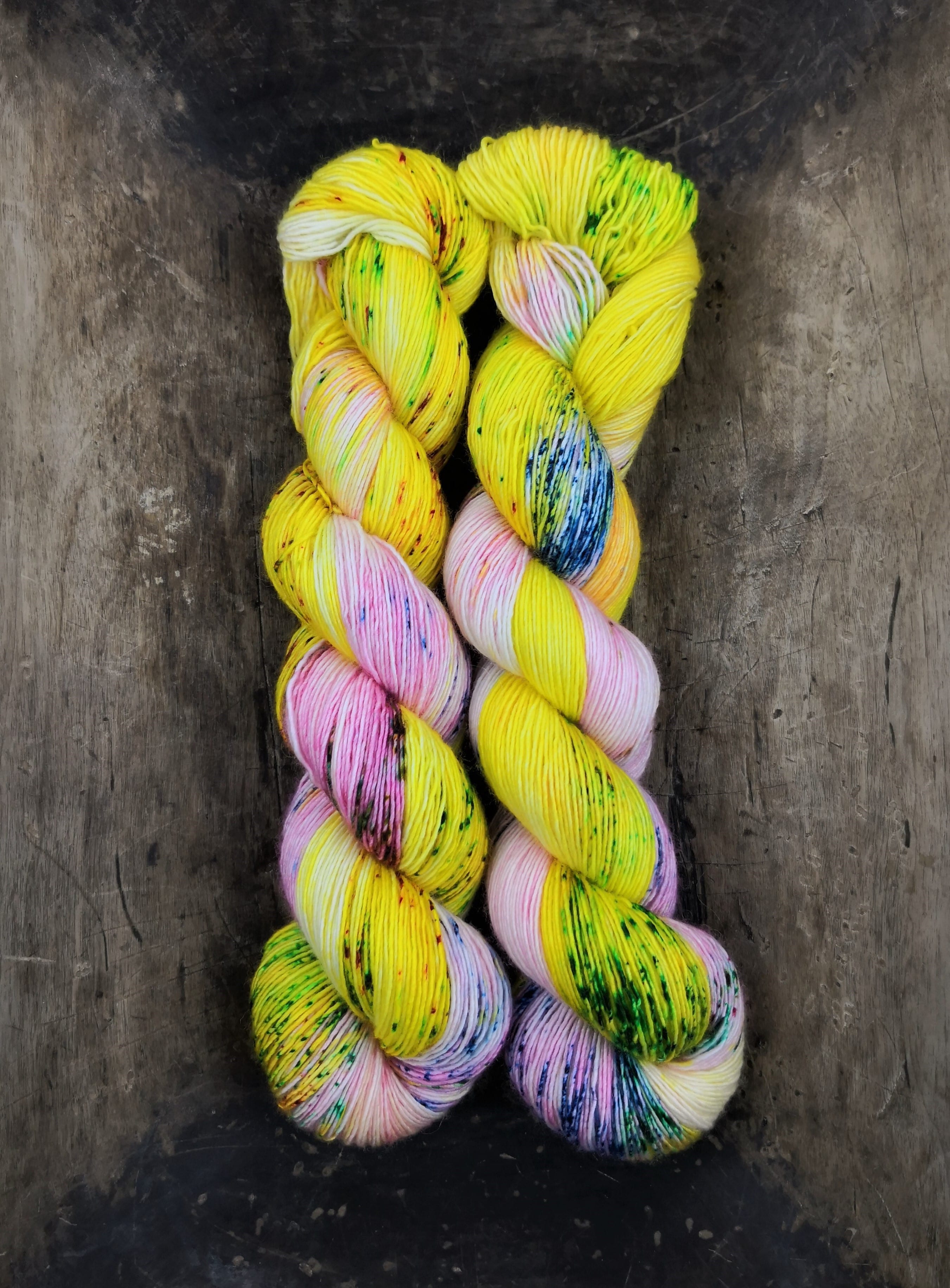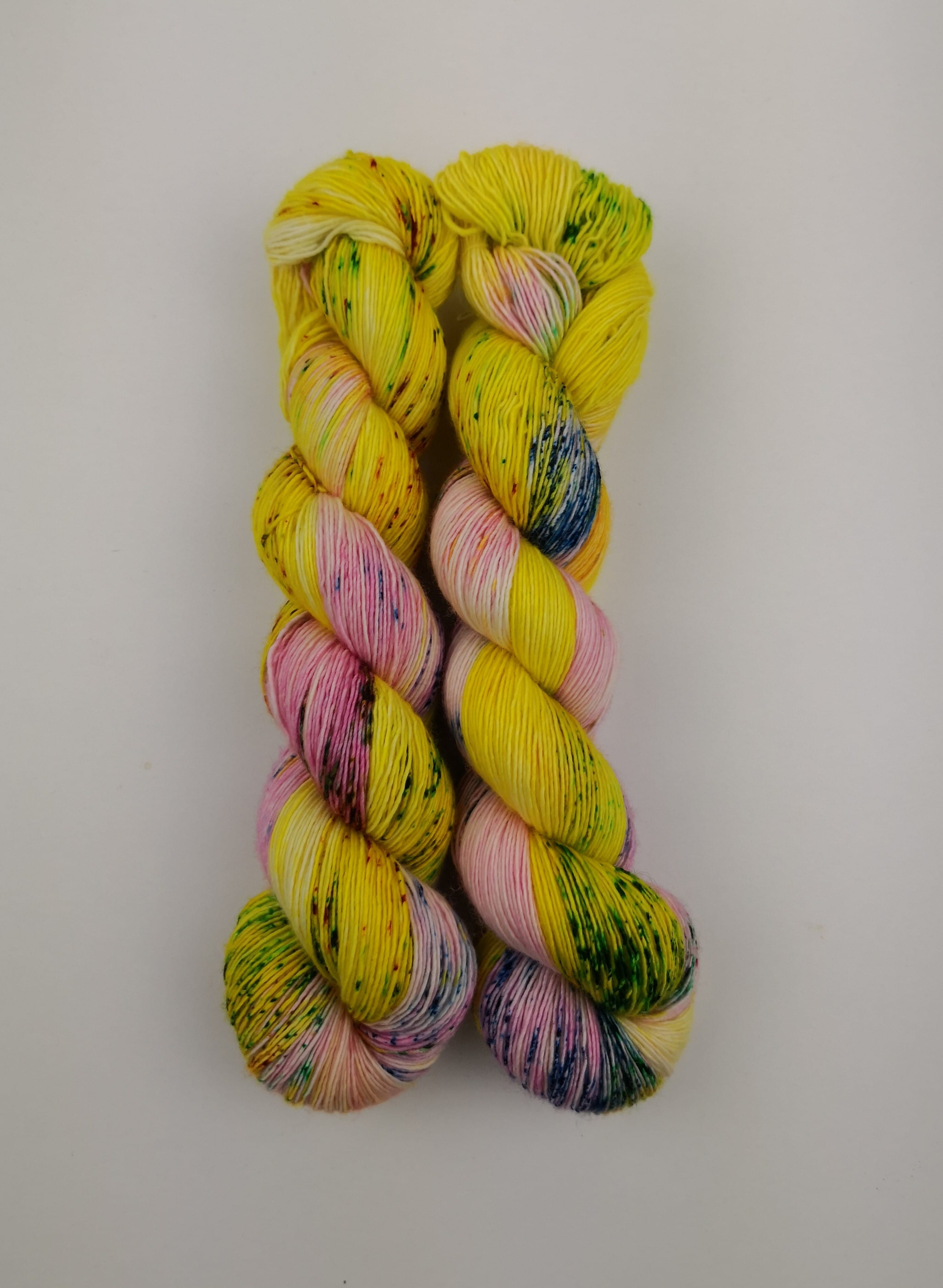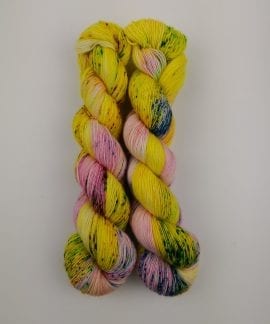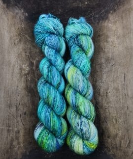 100 gram håndfarga og superwashbehandlet garn.