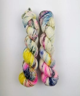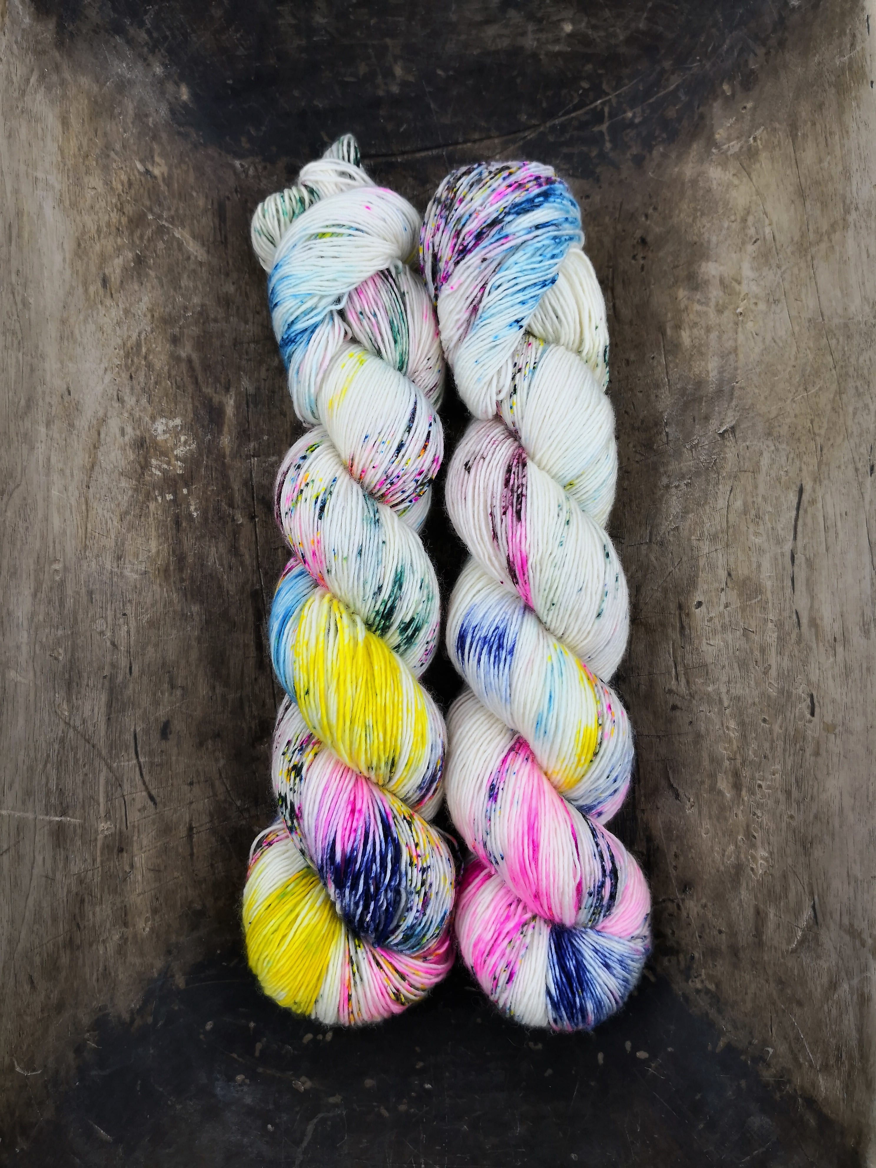 100 gram håndfarga og superwashbehandlet garn.