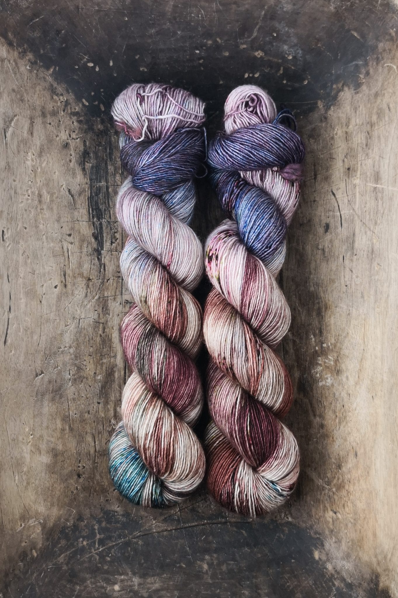 100 gram håndfarga og superwashbehandlet garn.