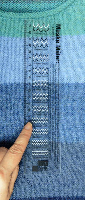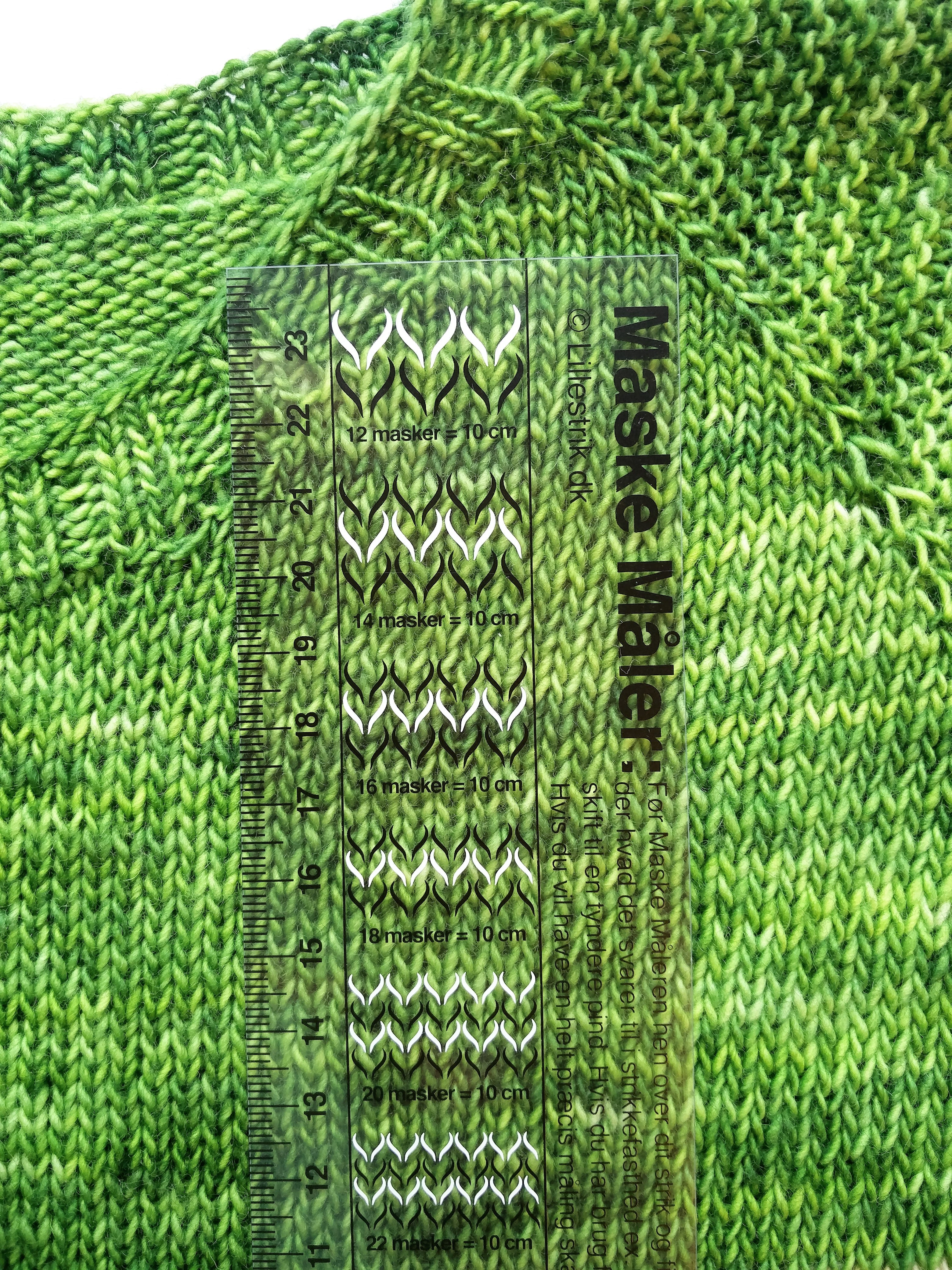 En fantastisk maskemåler i gjennomsiktig plast fra danske @lillestrik. Legg den over glattstrikket garn, og du kan lese av hvor mange masker du har på 10 cm bredde. Et fabelaktig verktøy!
