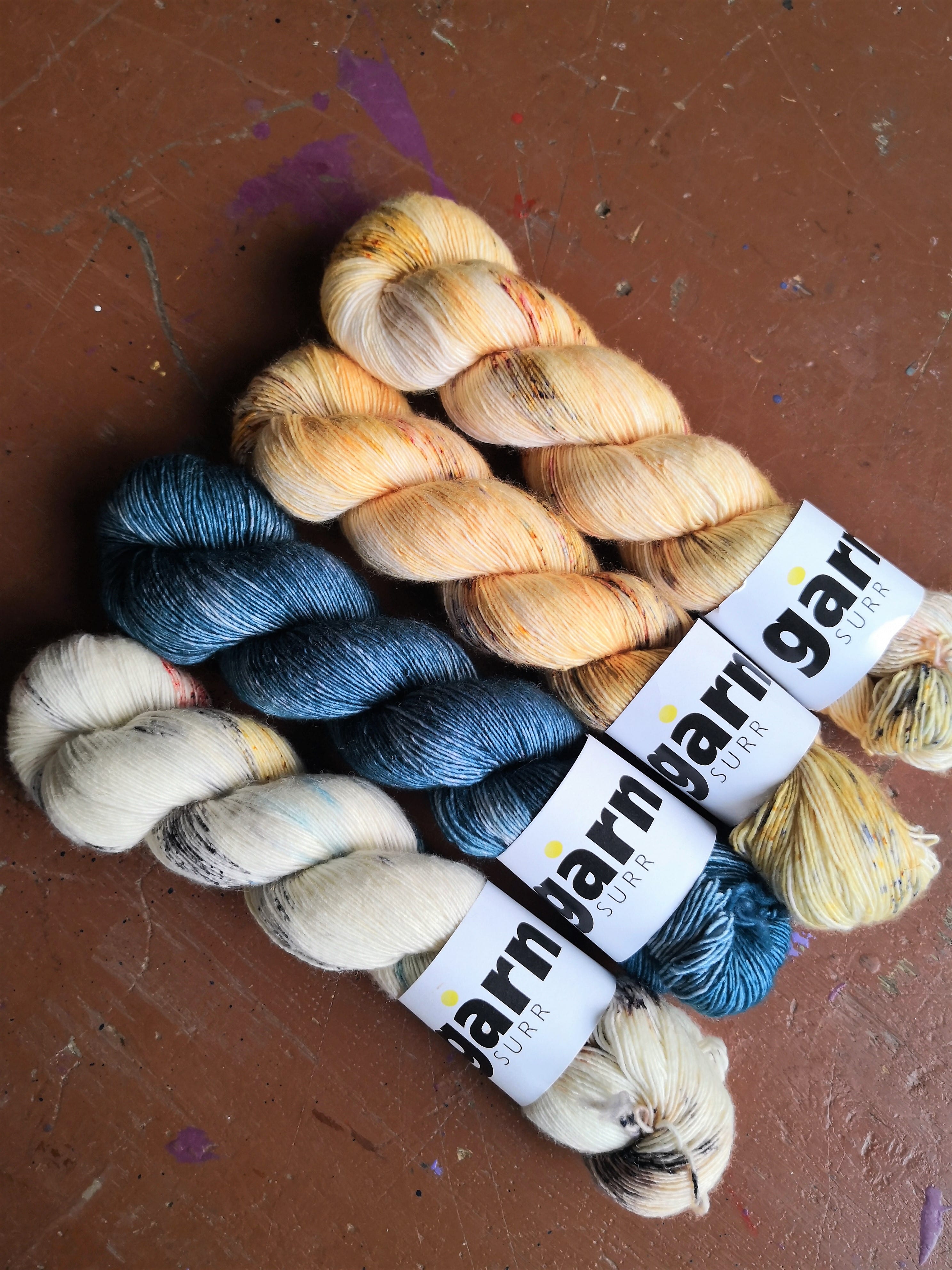 Yarnkit for Navelli Tee by Caitlin Hunter – @boylandknitworks. It contains four skeins of singel merino (366 meter/100 g).