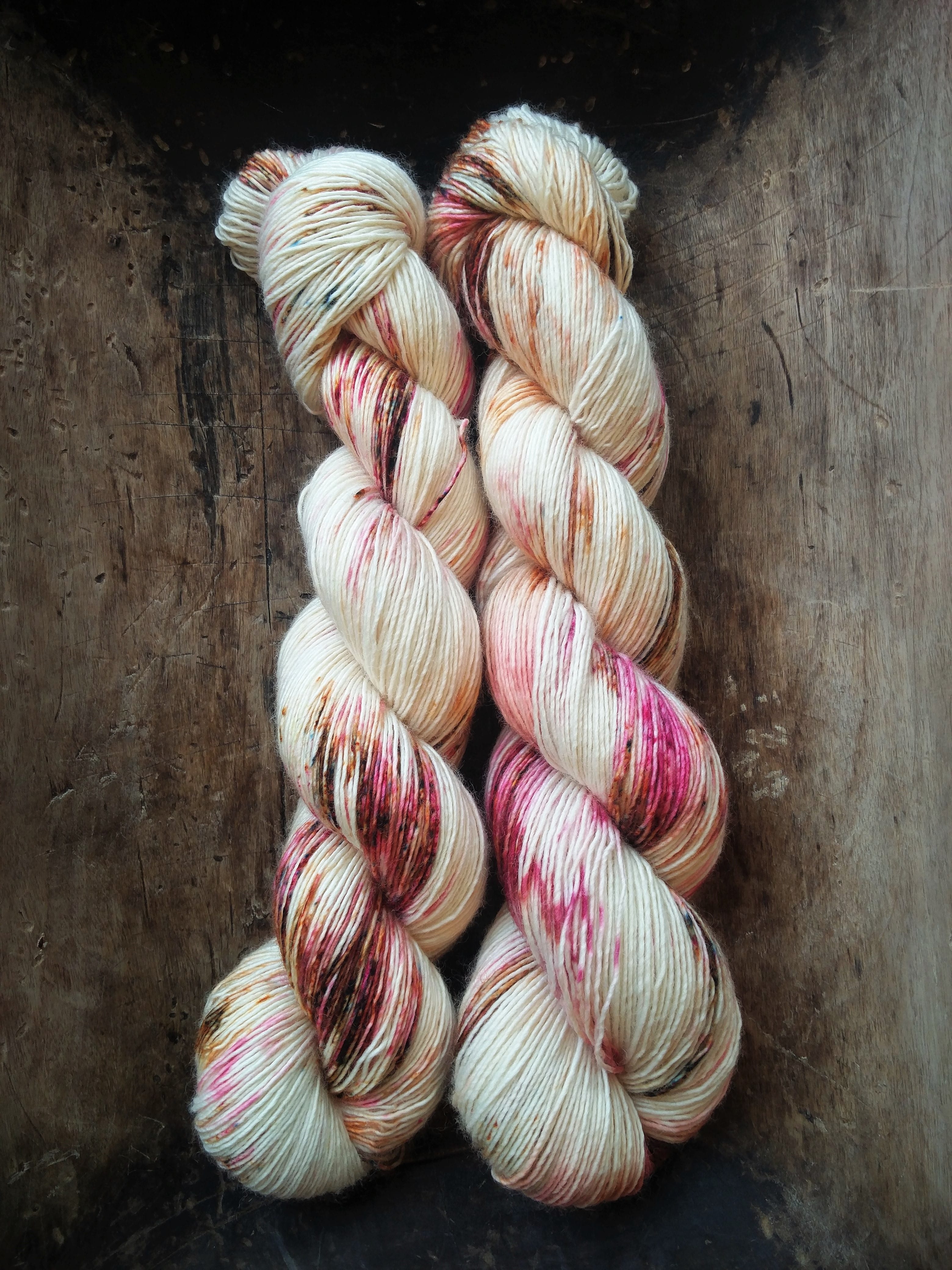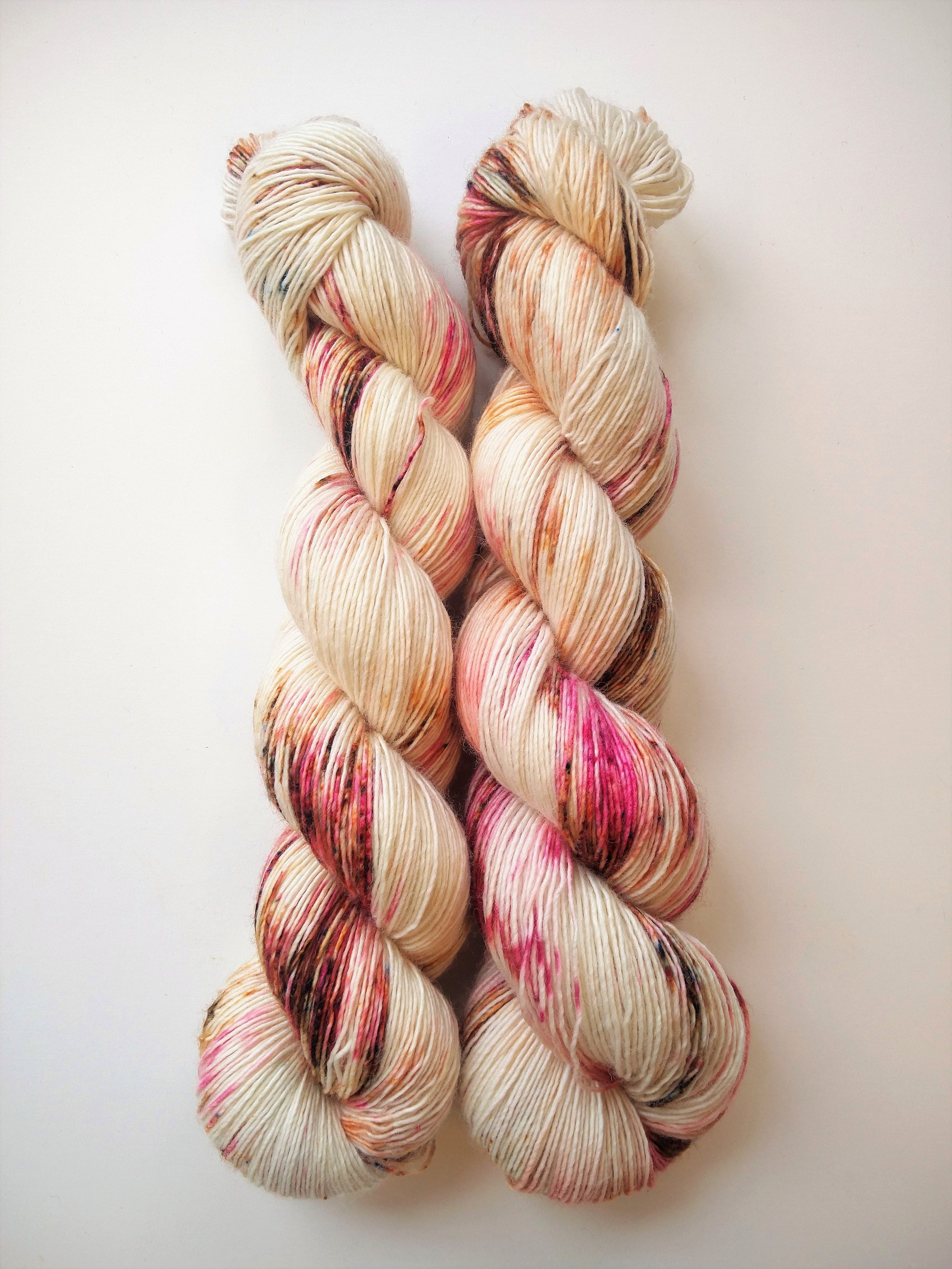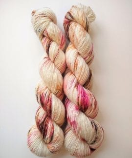 100 gram håndfarga og superwashbehandlet garn.