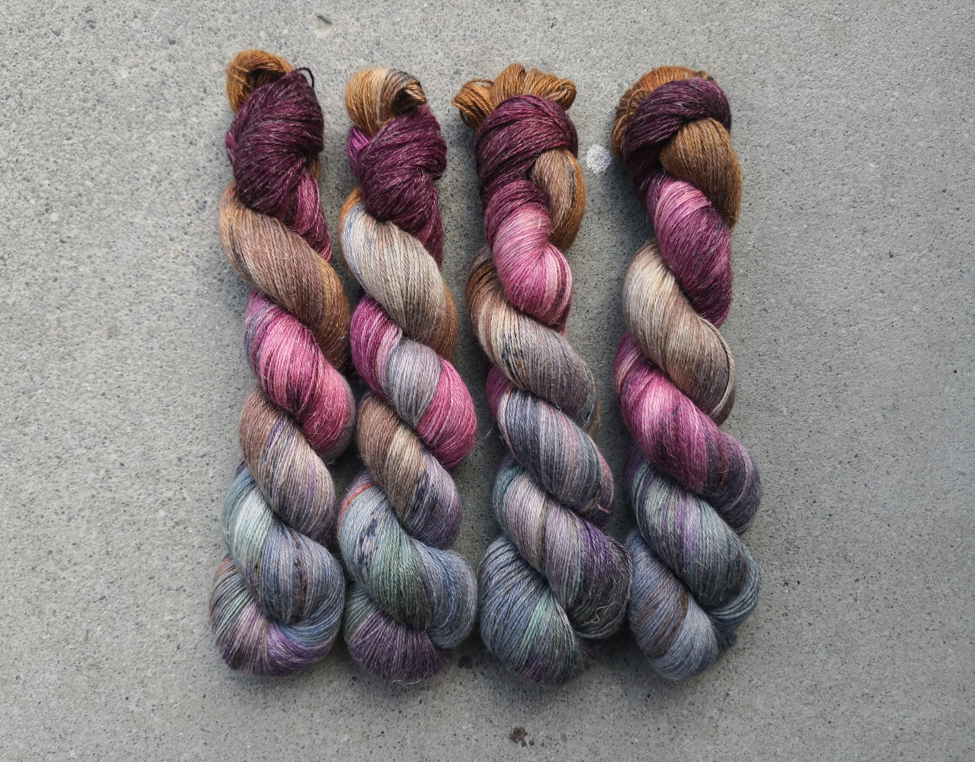Et nydelig firetråds garn i en herlig blanding av 50 prosent baby alpakka, 25 prosent silke og 25 prosent lin/flax. Det er første gang Garnsurr farger på et garn med vegetabilske fiber, og det er utrolig spennende. Som du ser gir alle fargene en fantastisk fin glød som minner oss om de fantastiske fargene vi har i naturen. Garnlengde 400 meter per 100 gram.