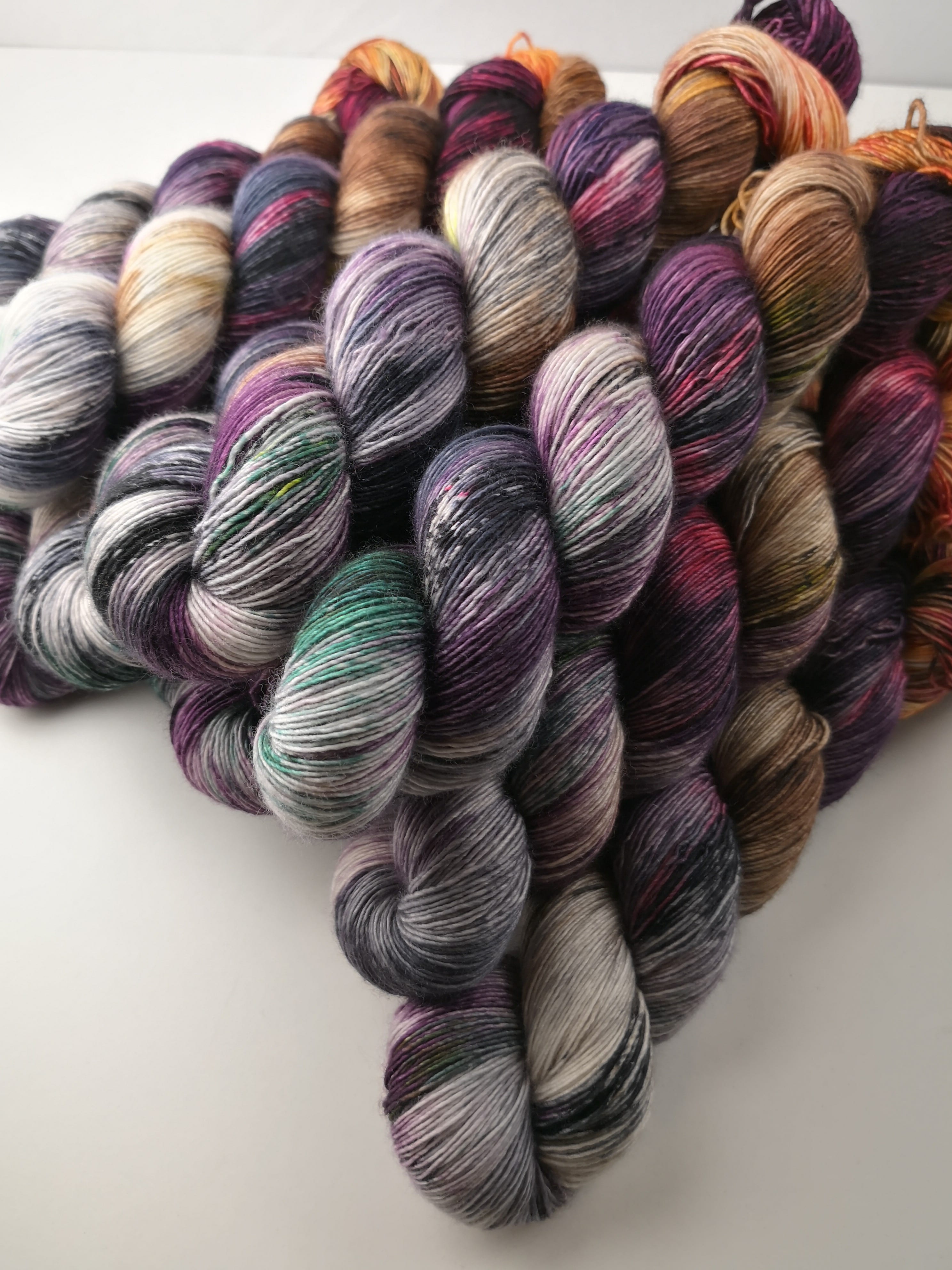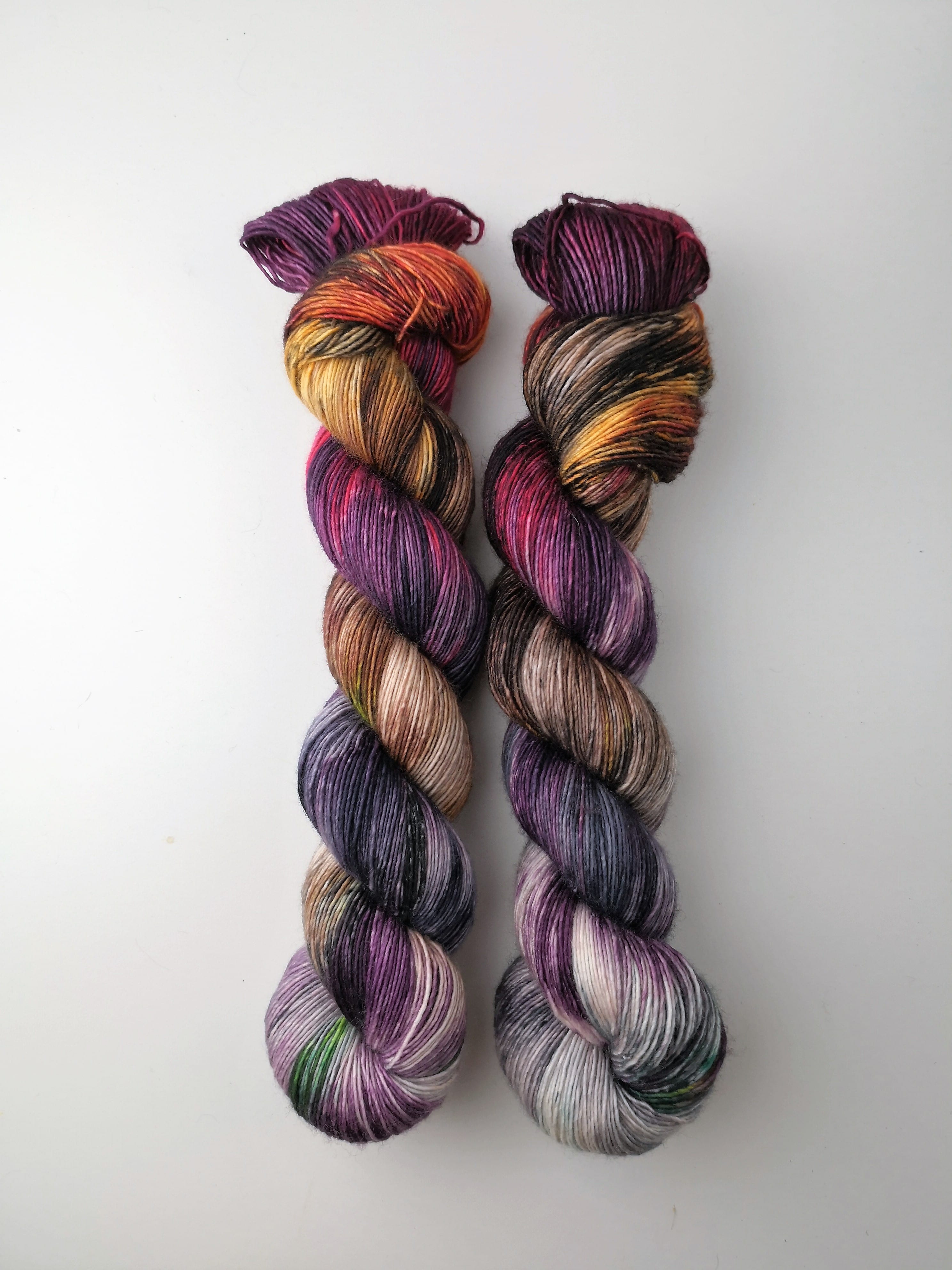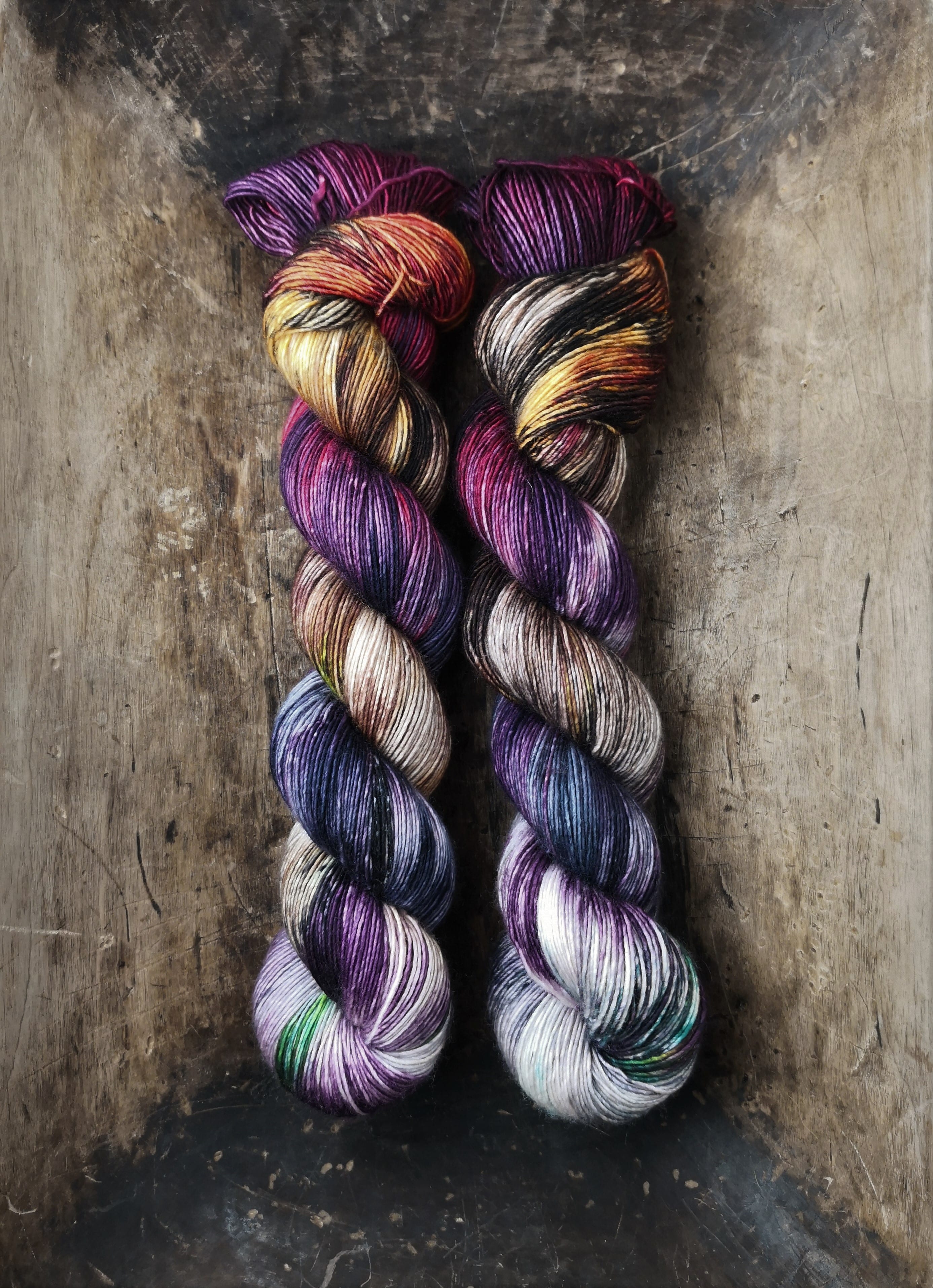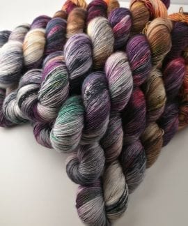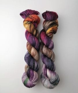 100 gram håndfarga og superwashbehandlet garn.