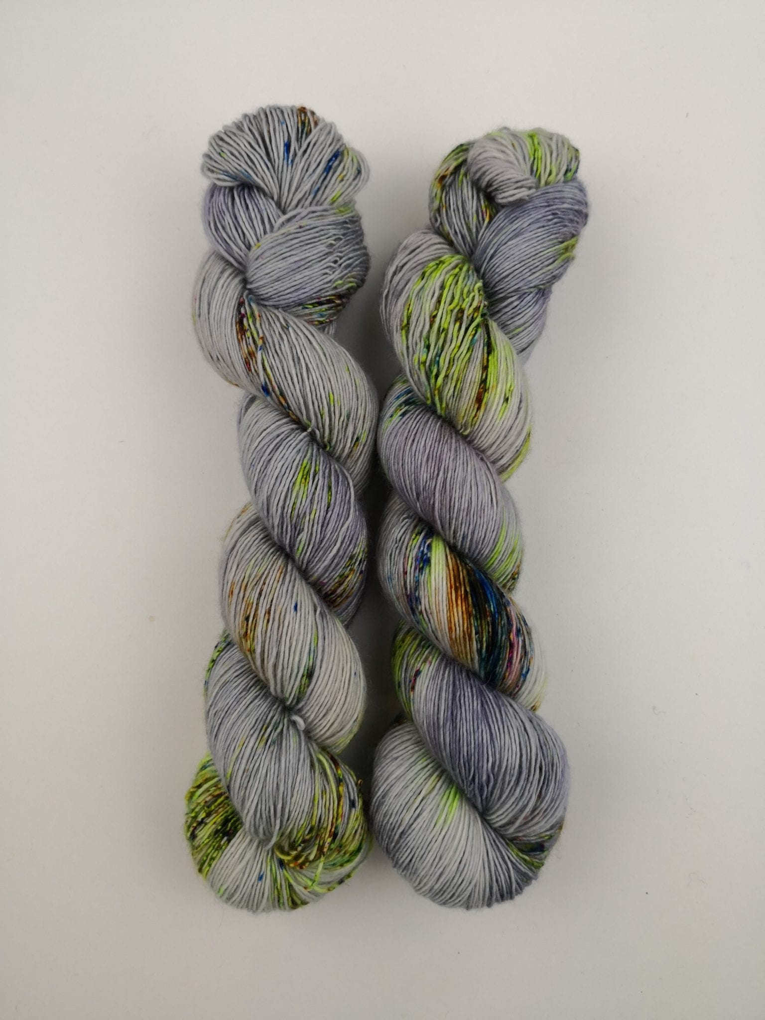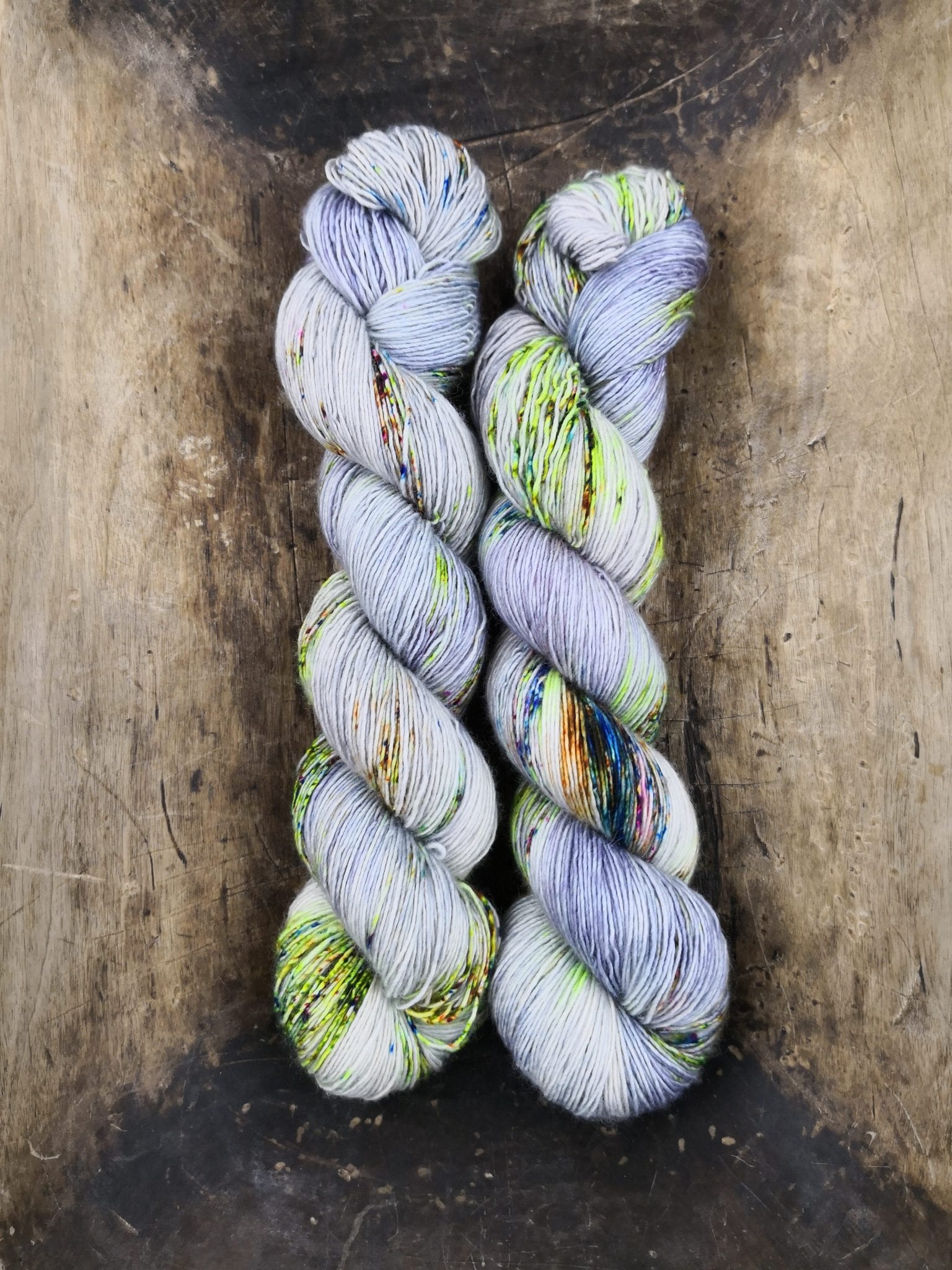 100 gram håndfarga og superwashbehandlet garn.
