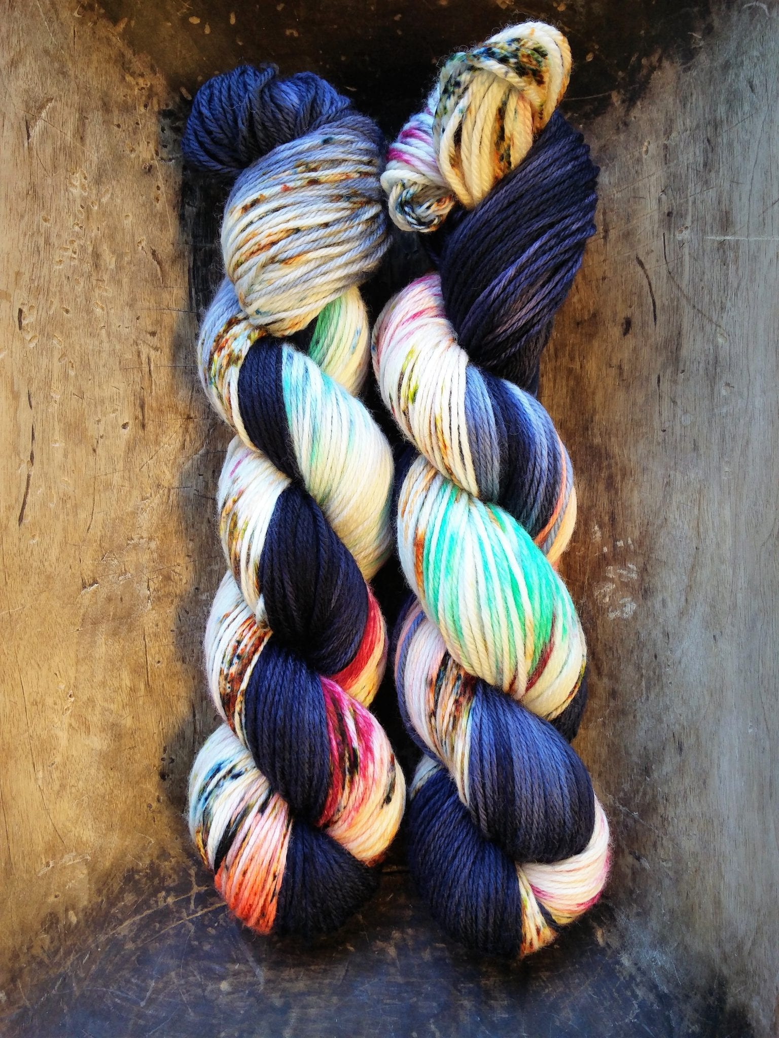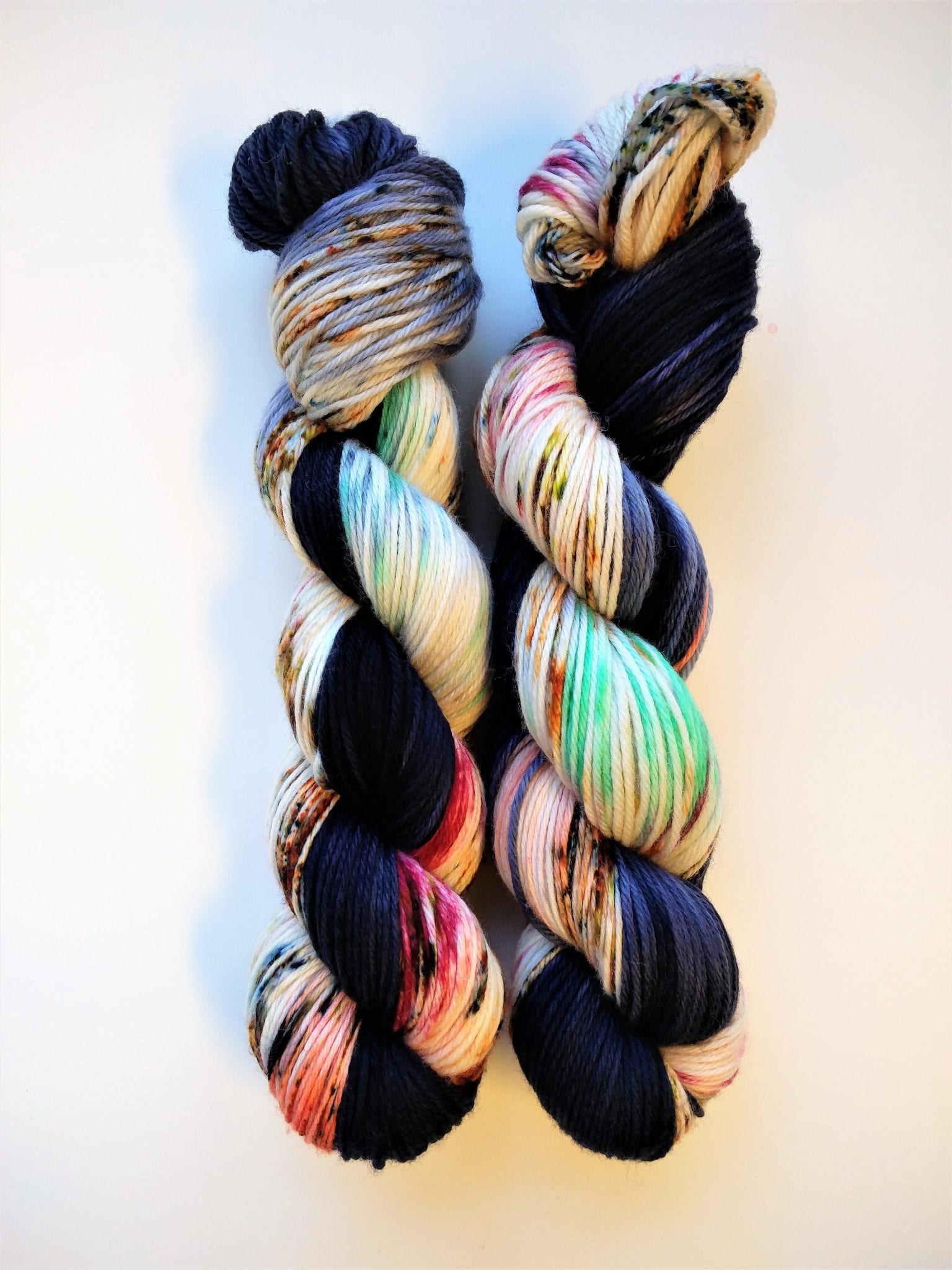 100 gram håndfarga og superwashbehandlet merino garn, lengde 225 meter (DK weight). Garnet er supermykt, har en vårlig twist, og kan brukes til det meste – kofter, luer, jakker og skjerf.