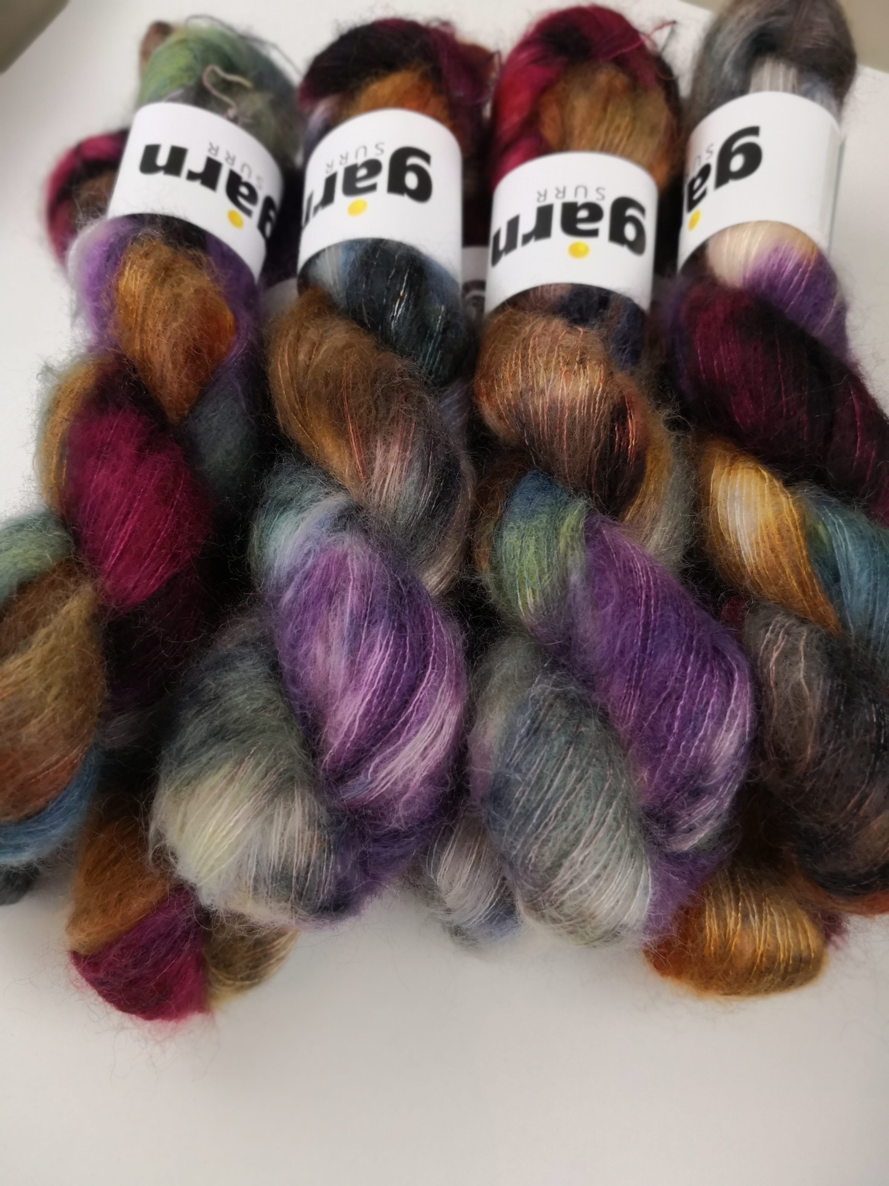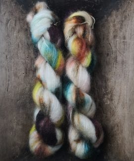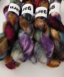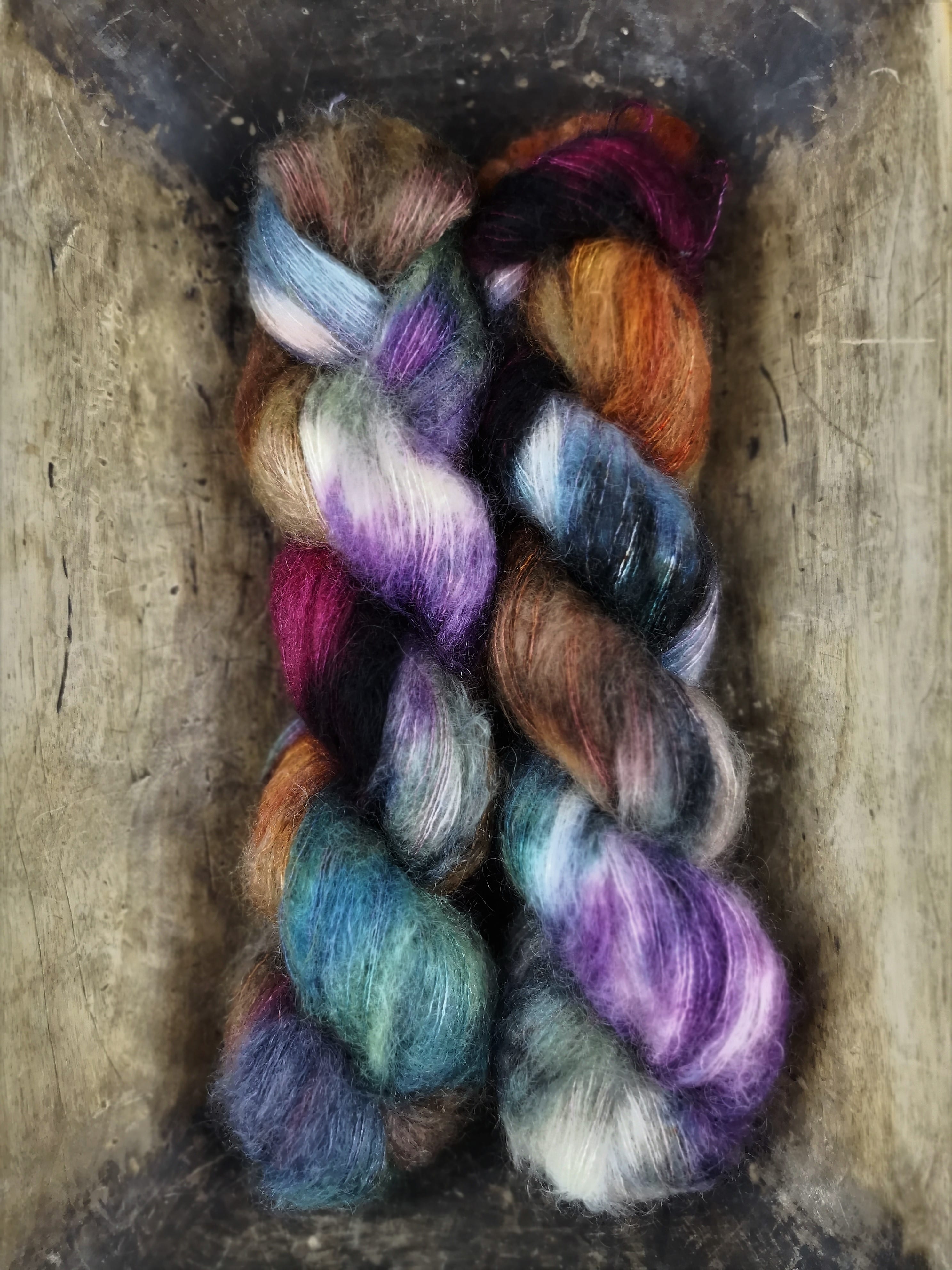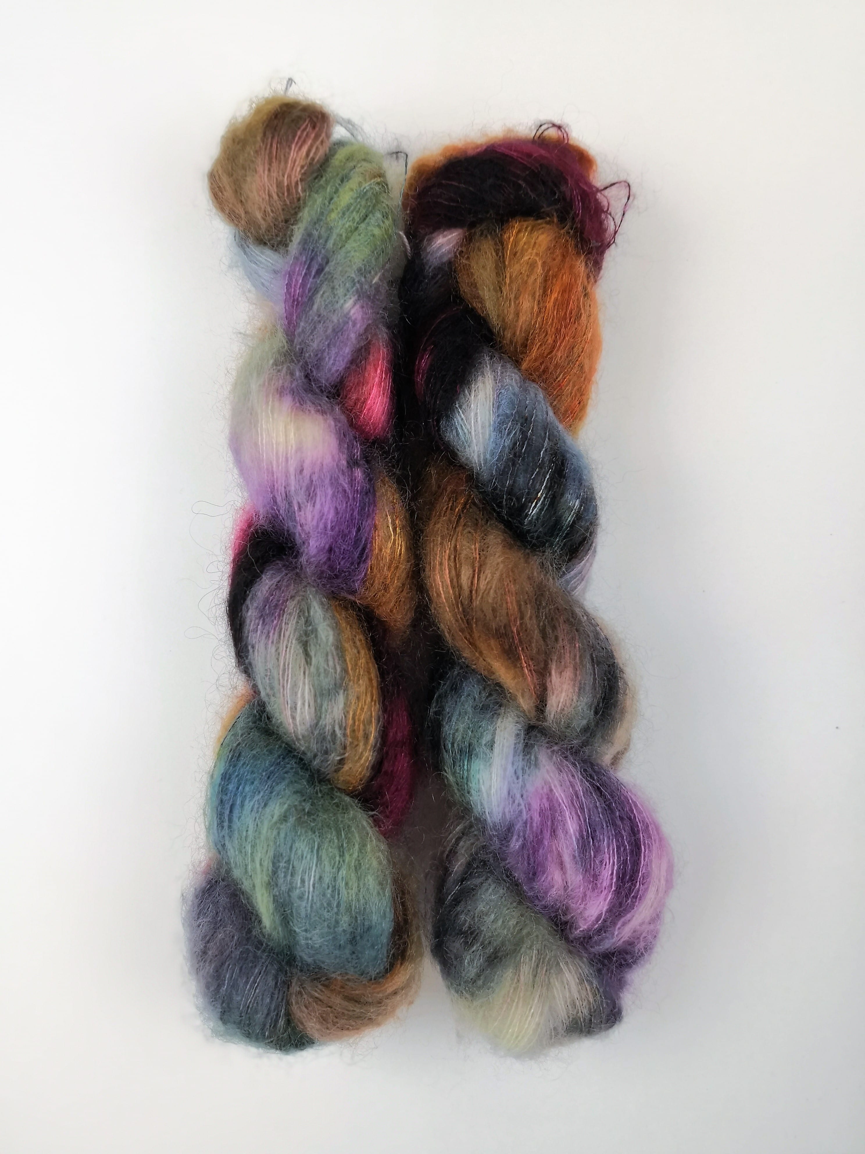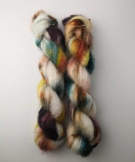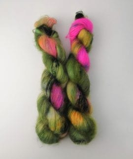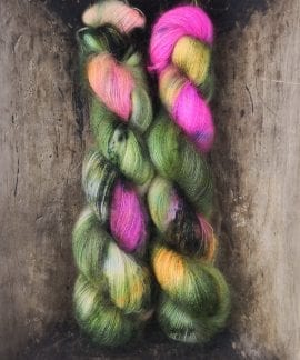 50 gram håndfarga silk mohair.