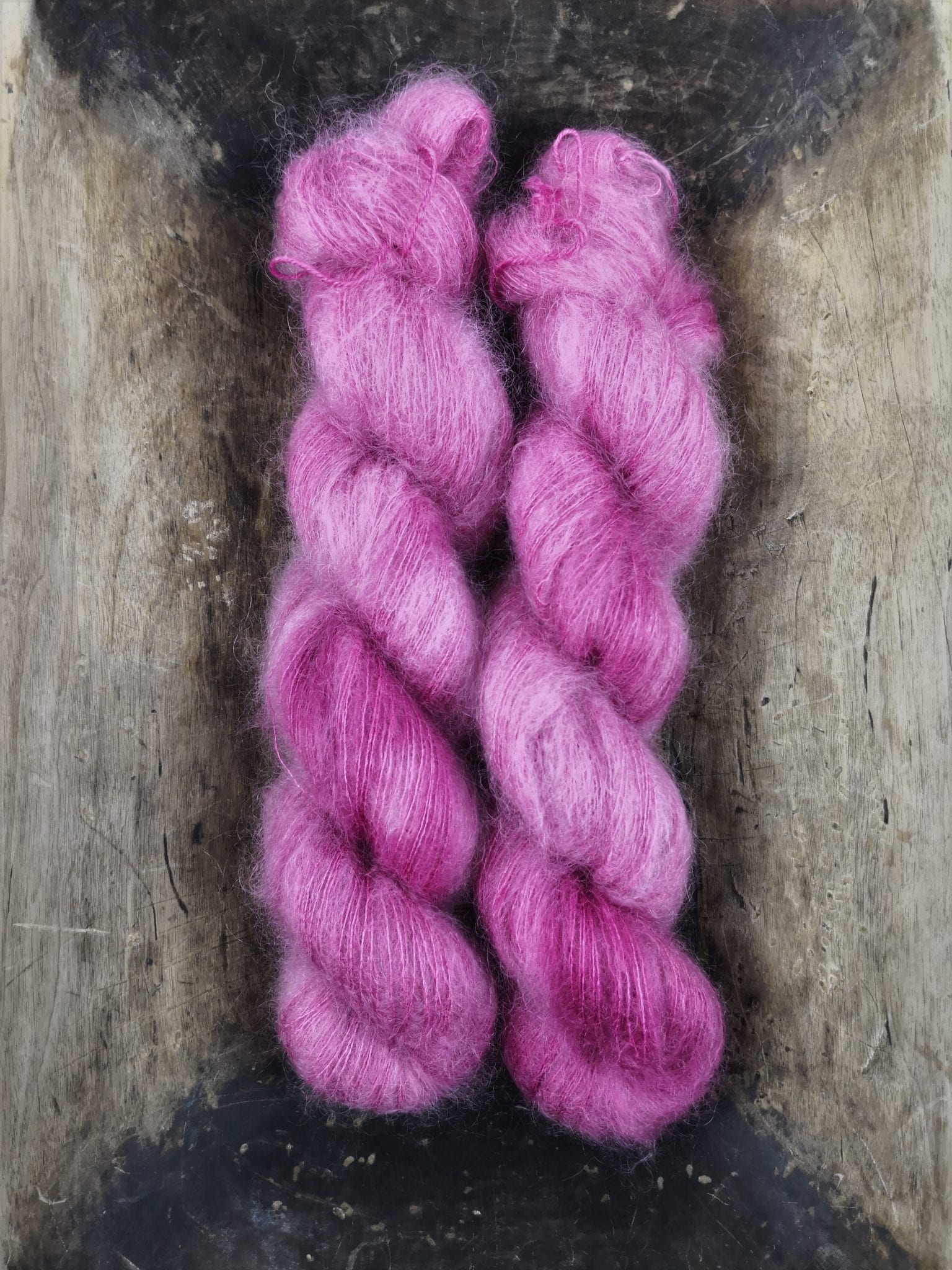 50 gram håndfarga Silk kid mohair.