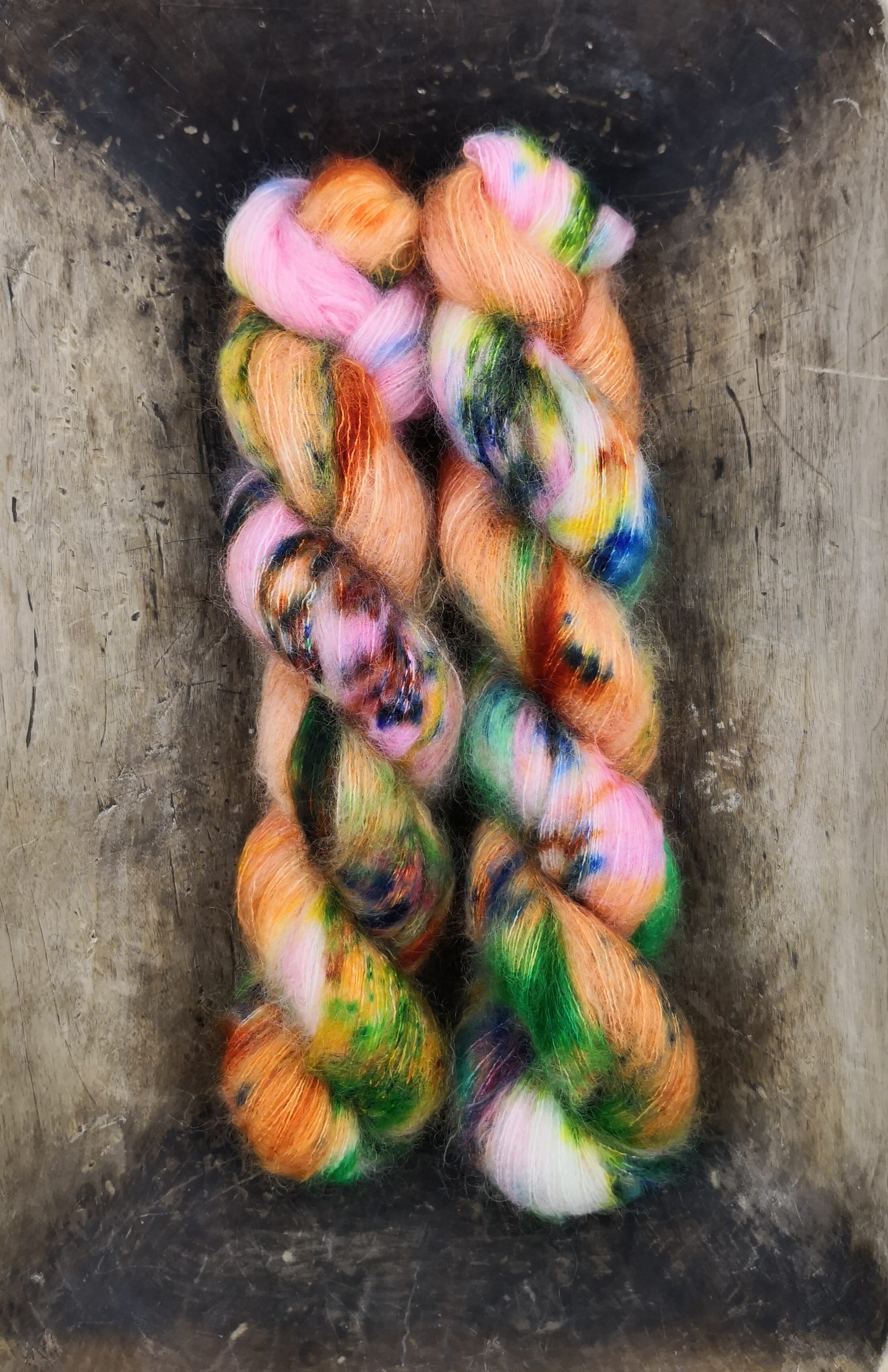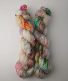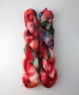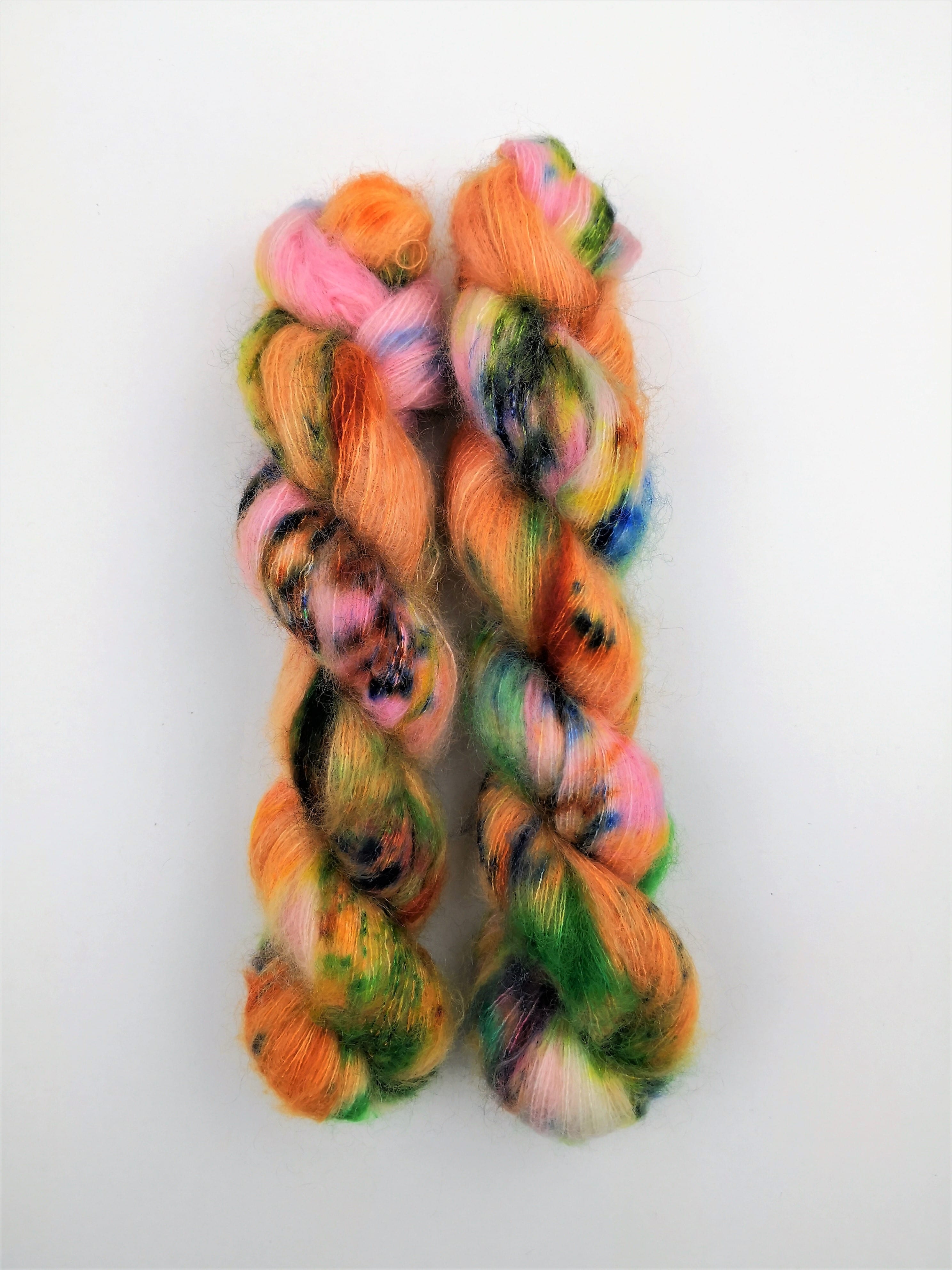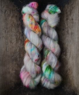 50 gram håndfarga Silk kid mohair.