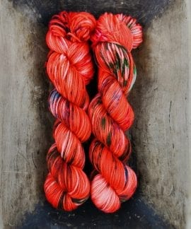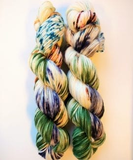 This is our DK yarn base. 100 g handdyed yarn, 225 m. 100% merino, 4ply. Soft as always, and great for sweaters and thicker knit. Mulesing free. Gently handwash in lukewarm water.